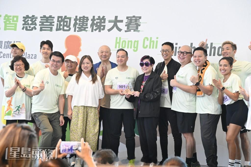 刘浩龙、林盛斌(Bob)、李金凯及陈海儿等今日(18日)到湾仔出席“匡智慈善跑楼梯大赛2025”,文化体育及旅游局局长罗淑佩及警务处处长周一鸣等则担任嘉宾为大赛主持开跑仪式。