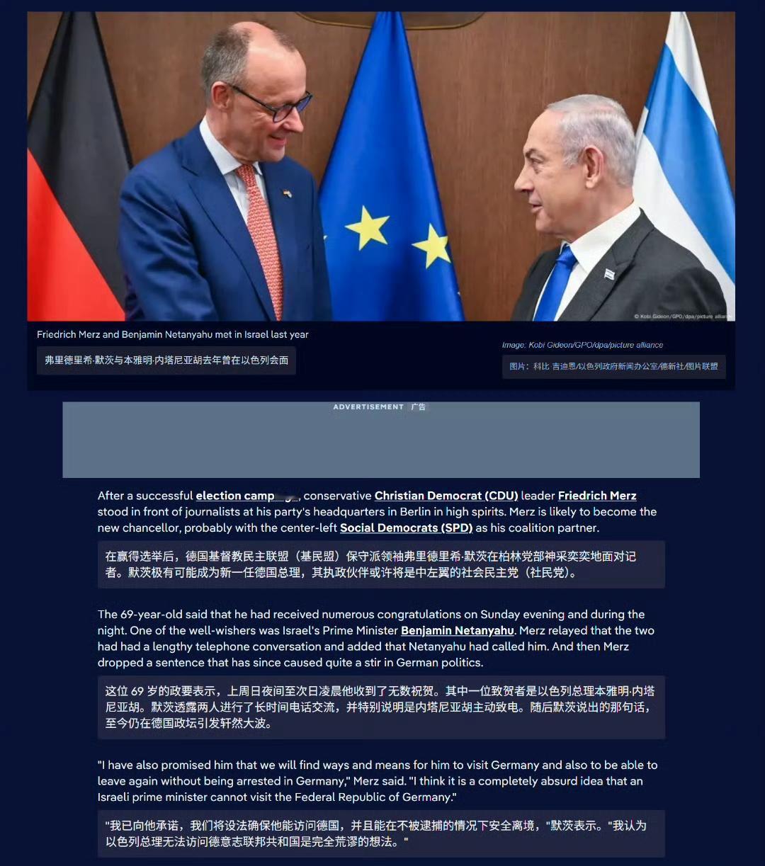 德国政府发言人表示,如果俄罗斯总统普京出席在布达佩斯与特朗普的峰会,匈牙利有义务逮捕这位被国际刑事法院发出逮捕令的俄罗斯领导人。 同样是这个德国政府,在赢得选举后,德国总理默茨表示:“我已向内塔尼亚胡承诺,我们将设法确保他能访问德国,并且能在不被逮捕的情况下安全离境,我认为以色列总理无法访问德意志联邦共和国是完全荒谬的想法。” 去年 11 月,位于荷兰海牙的国际刑事法院对内塔尼亚胡及以色列前国防部长约阿夫·加兰特也发出了逮捕令。 这就是欧洲,可以毫无底线的双标,欧洲的好日子还在后面呢,等着看吧。