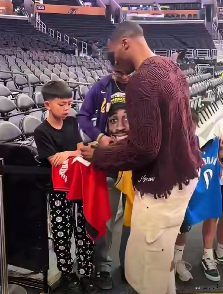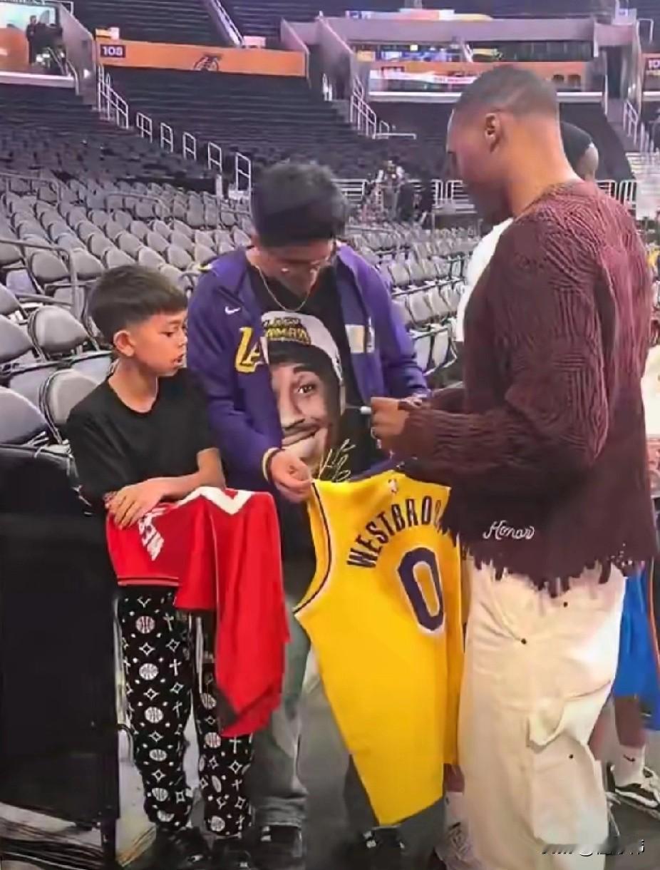 威少是真的不喜欢湖人!球衣拿着威少的球衣,排队等威少签名! 前面的球迷拿着是雷