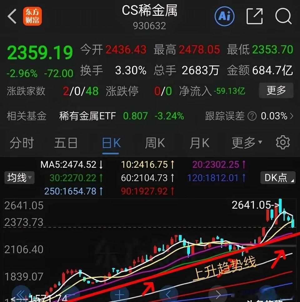1,稀有金属,稀土产业走势与其相近,日线走势如下图4所示,涨的猛跌的快,周五已经跌破了10日线支撑,接下来有可能继续补跌回踩下方20-30日线支撑,大约还有2.5%下跌空间。