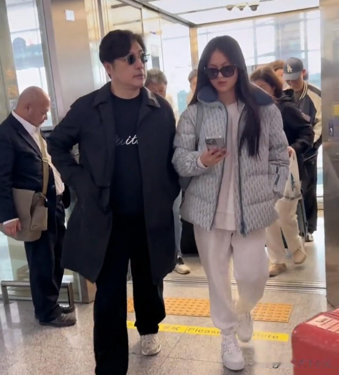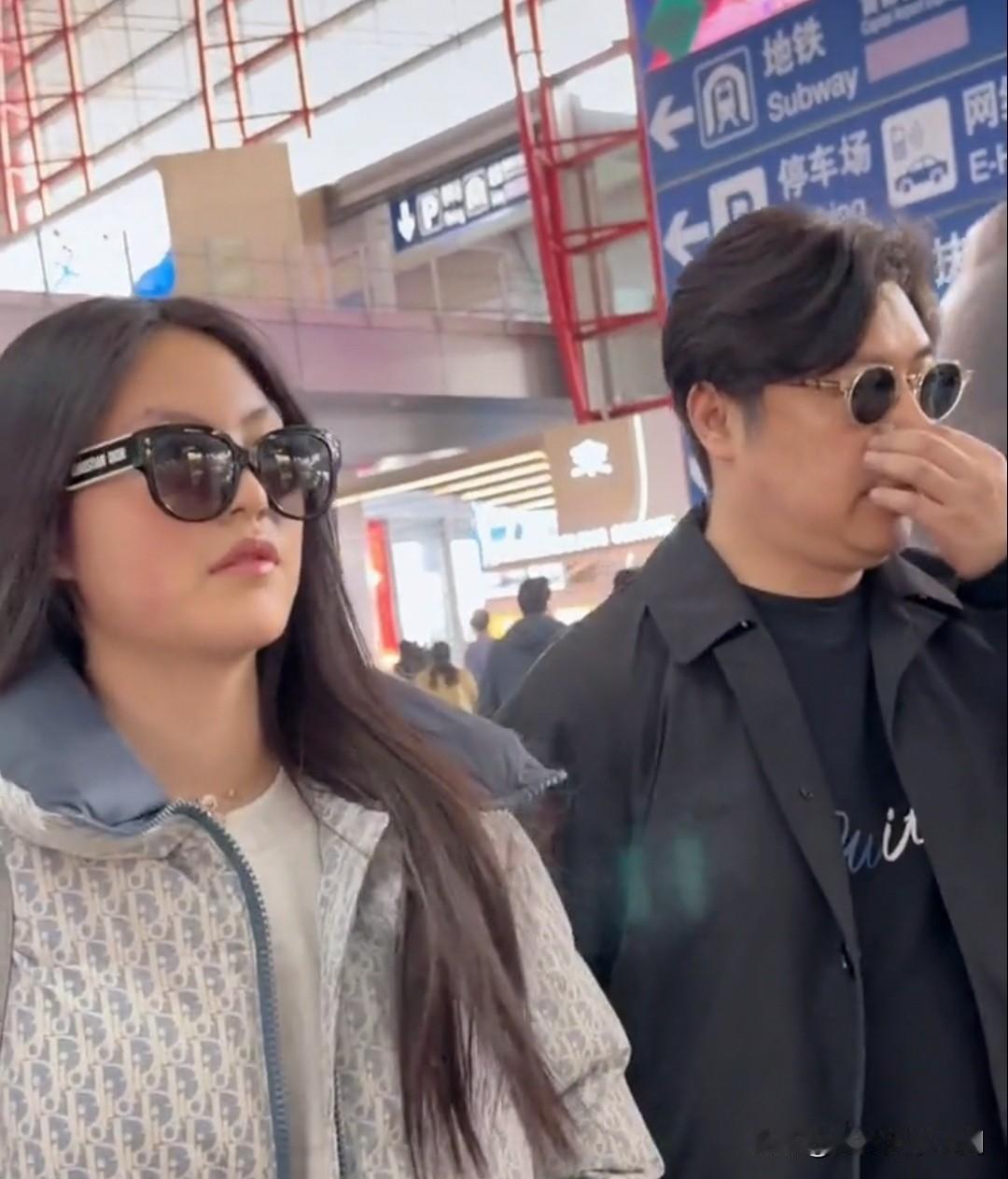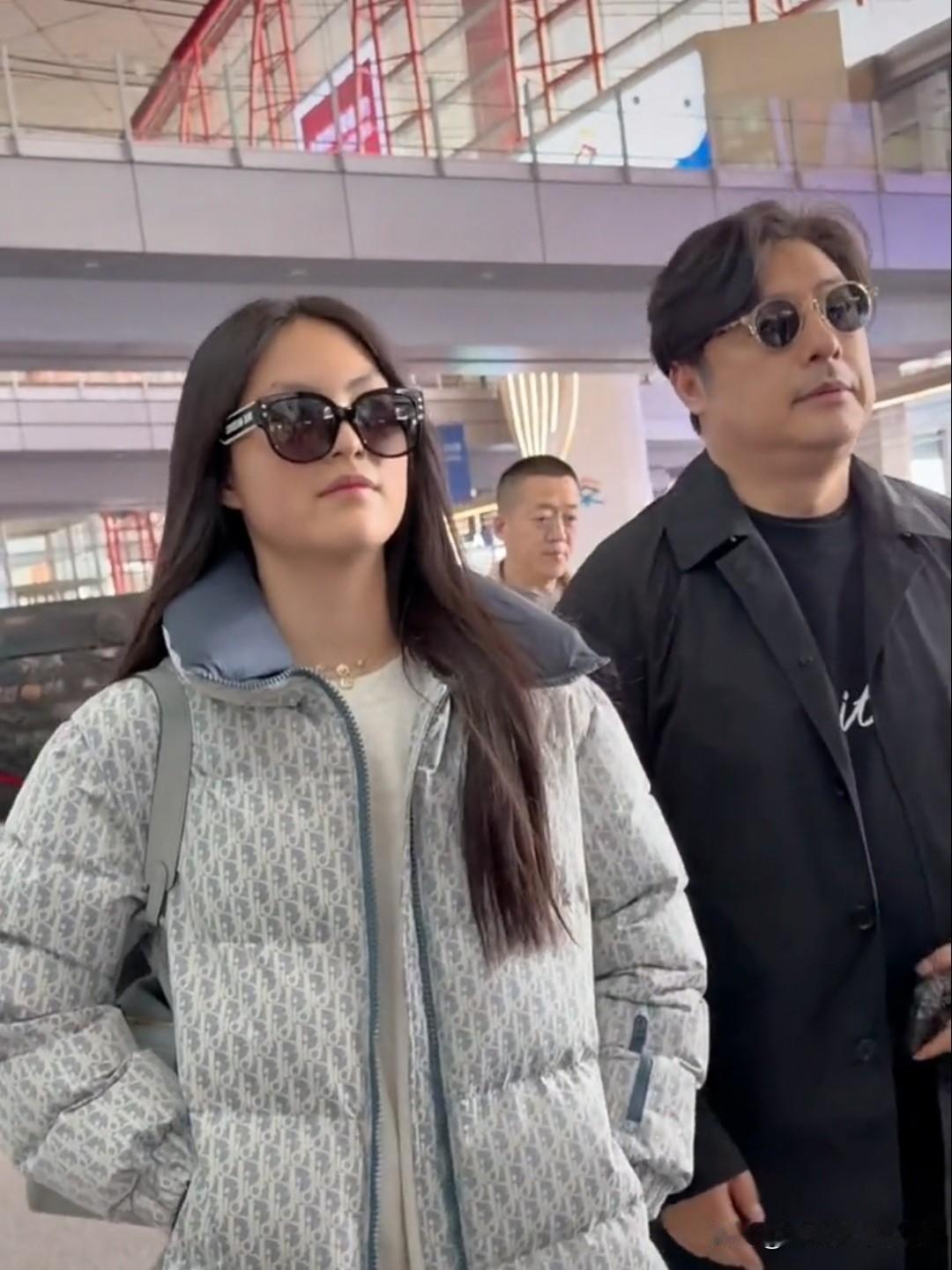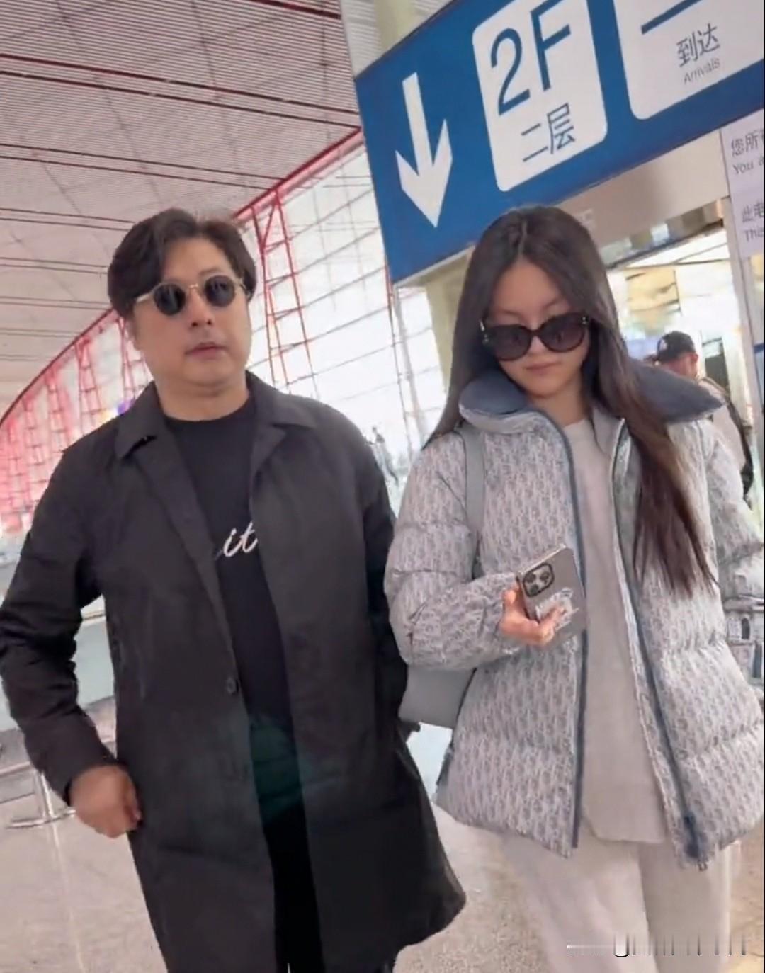 王诗龄放假回京,爸爸王岳伦来接机,刚过完16岁生日的王诗龄好像爸爸[大笑][大笑