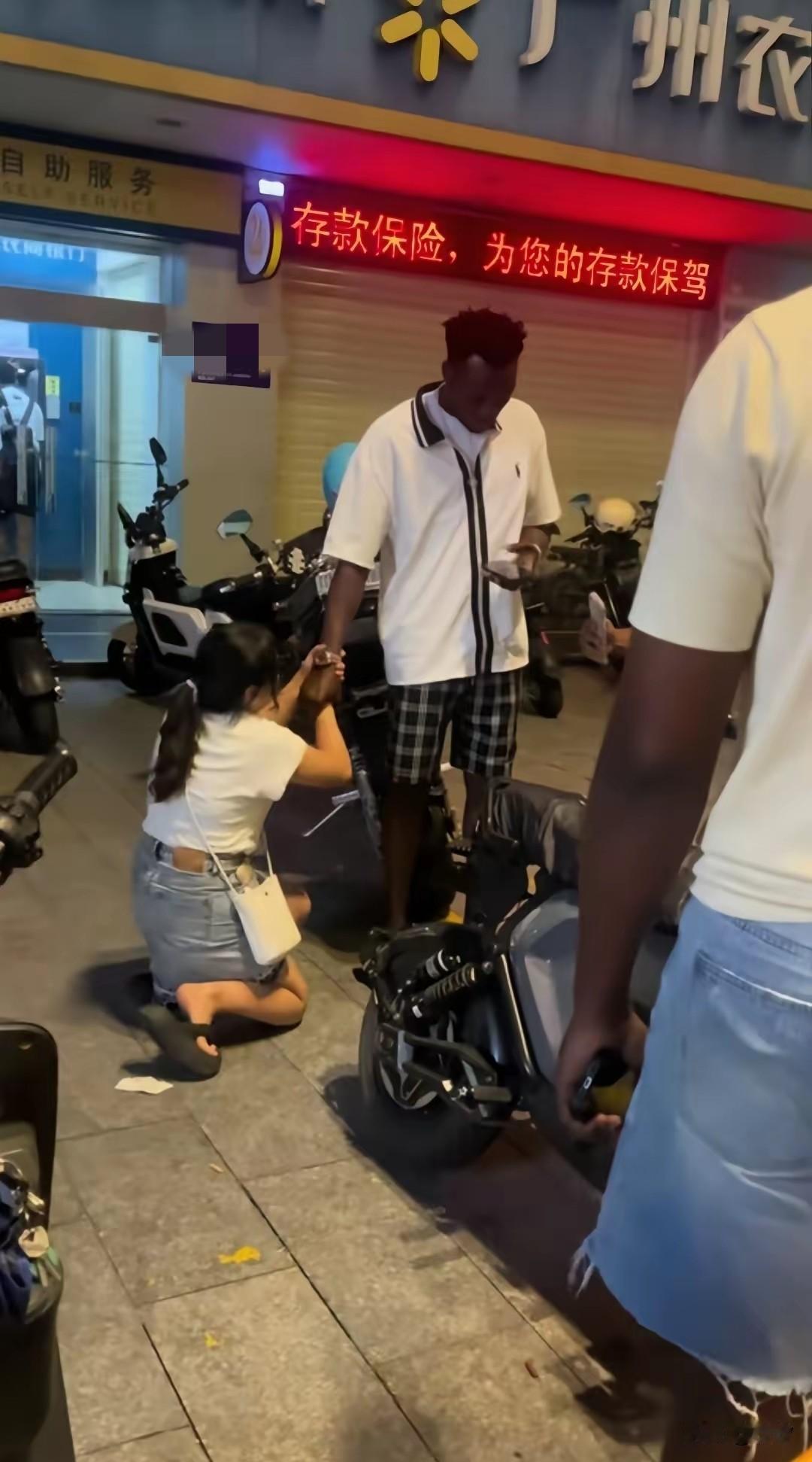 广州街头女子跪在地上, 苦苦哀求自己的老外男友, 希望对方不要和自己分手, 只见对方还拿出手机在拍女友哀求自己的画面,好在网上炫耀, 国内女生不知道为啥想不开, 都去找老外谈朋友, 有些甚至还倒贴, 国内男多女少, 她们却热衷和老外谈朋友, 有何老外朋友好像高人一等, 胖友圈和社交平台全是炫耀老外男友的强烈自豪感, 等到新鲜感一过人家就找下一个了, 这女生还不想放手, 看来是爱的深沉, 虽说不反对跨国恋, 但是你好歹找个正常点的, 这种既不温柔又没有钱, 也不知道姑娘你图啥? 这样的男友某大陆一抓一把, 要是实在喜欢移民去那里, 随便谈朋友, 这样苦苦哀求有啥用? 不要最后又找老实人, 害人害己良心不会痛吗? 大家对于广州街头女子跪求老外男友别抛弃怎么看? 跨国恋幸福吗?一起聊聊跨国恋 广州外国人 广州女生 广州姑娘 广州女子跪街