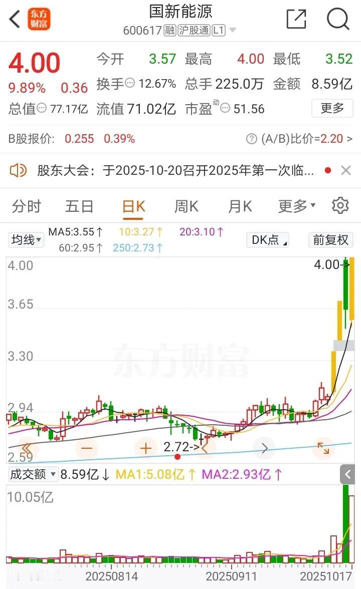 周末复盘:10月19日连板接力低位极具看点的个股! 1、海通发展(海峡两岸) 周五在市场整体回调的情况下,海峡两岸板块成了市场最强方向,主要原因有近期国台办将扩大台湾居民来大陆落地办证口岸范围,再加上电视剧沉默的荣耀热播,这使得整个海峡两岸方向连续两天走出了超强的板块效应,海通在首板就是这个方向最强的个股,但是它周五竞价只高开不到3个点并不算特别强,但是开盘后整个板块有明显拉升,海通也是顺势走出比较强势的拉升上板走势,但是毕竟它竞价一般,所以板上是有明显分歧的,但是在板块整体不错的情况下还是顶住分歧快速封死涨停,走出了一个放量连板的走势! 盘后的龙虎榜是3日榜,从买卖盘看,炒股养家是明显止盈离场,新进场主要是机构和西大街这个量化,买入都是2千多万,海通毕竟流通市值只有30亿,是非常小的盘子,在现阶段这个市场是很容易做成高标的,如果整个海峡两岸方向能够有持续性,它依然会是绝对的情绪龙头,而另外一只海峡最终也走出二连板是可以看成趋势龙头,两只个股是相辅相成的,隔日一旦海通竞价出现超强高开表现,它走出高开秒板的概率还是非常大的,毕竟现在市场没有绝对题材的情况下,不排除这个方向会短暂的走出持续性,不过这只个股的接力一定要结合板块的强度一起看,从二板的放量分歧看,它就算强势上板,想要走远的话板上肯定会适当释放分歧,而分歧后的承接回封才是确定性买点! 2、睿能科技(存储芯片) 睿能首板是存储芯片方向最早换手涨停的个股,但是整体的量能释放的并不充分,所以它在竞价大幅高开的情况下迅速出现资金抢跑兑现,但是很快就有资金强承接回升,并且在突破开盘价后出现了秒板的走势,走出了一个比较漂亮的放量连板涨停! 盘后的龙虎榜买盘5个席位买入非常均衡,都是1千万以上的买入,卖盘多为量化止盈抢跑,值得一提的是3日榜有西大街这个量化3千万的买入,从榜单上看,这个席位大概率是首板介入的,而在次板高开下杀时并没有选择卖出,从这个席位历次操盘模式看,确实不可思议,但是这也恰恰说明这个席位就是市场上目前最强的量化,而且这个席位是比较能够造妖的,所以隔日睿能的预期其实非常高,特别是一旦存储芯片方向出现强势修复,睿能这个盘子的个股是可能走成趋势高标的,特别是午后三孚的回封对于它来说明显是促进,隔日一旦板块修复,睿能是存储芯片方向最可能走出来的个股,所以它和海通或许是周一最具看点的两只2进3个股! 3、平潭发展(海峡两岸) 平潭是海峡两岸方向首板最早涨停的个股,它日线形态是明显的倍量突破的一个涨停形态,如果板块强势的话,是很可能走出持续性的! 盘后的龙虎榜佛山大佬买入1个亿,其余做多席位有3个量化,卖盘多为潜伏盘获利离场,这个榜单算是佛山一家独大,佛山是典型的一日游资金,隔日除非开一字板,不然肯定是开盘就砸出来,所以对于平潭来说竞价以及开盘的表现就极具看点了,如果能够完全承接住佛山的砸盘,这只个股就可以明显高看一眼,特别是隔日一旦涨停是会突破8月底的高点,如果在早盘能够强承接并站稳3.92之上,海通也是明显正反馈的情况下,平潭的晋级就非常值得关注了,不过这只个股想要连板晋级,必然会是一个大的放量换手晋级板! 4、国新能源(燃气) 国新2进3失败后在周五走出一个强势反包的走势,它其实在2进3的竞价是明显强于大有的,但是最终走出来的反而是大有,更多的原因是燃气方向要明显弱于煤炭方向,但是周五却恰恰相反,煤炭是明显的冲高回落,反而燃气走出了比较强势的低开反冲,这样的话它这个连板就很可能会有连续性! 国新这个涨停价挺有意思,正好是和2进3炸板的最高点一致,4块这个价位是典型的强压力位,所以它是在找板上顶住强分歧晋级的,这只个股隔日如果竞价出现比较强的抢筹,再加上燃气方向早盘有持续性的话,它走出连板晋级还是非常有看点的,特别是煤炭方向偏弱的情况下,不排除资金会选择类似的燃气方向继续深耕! 5、东信和平(数字货币) 东信在这个位置走出N型板还是比较意外的,毕竟这只个股板块效应并不明显,而且在周五整个市场弱势的情况下走出来就更加难得可贵了,它这样的涨停很明显是资金对老妖股的尝试,4天2板的表现至少会吸引到市场的目光聚焦! 盘后的龙虎榜中山东路、新闸路和成都系的买盘很豪华,西大街这个量化也有参与,卖盘整体抛压并不大,这个榜单冲高的溢价肯定是有所保证的,但是做多的游资多为短炒资金,隔日早盘不能迅速走强出现封板动能的话肯定会兑现离场,再加上东信周五的量能释放的并不好,所以隔日如果板块不能爆发的话,东信想要连板还是比较困难的,但是反之,一旦竞价和板块都是正反馈,那么东信或许会走出非常强势的表现,那么它的连板也就值得期待,这只个股可以重点关注早盘冲板动能出现后的承接放量回封买点! 文中的内容仅为分享和交流,不作为实际操作建议!