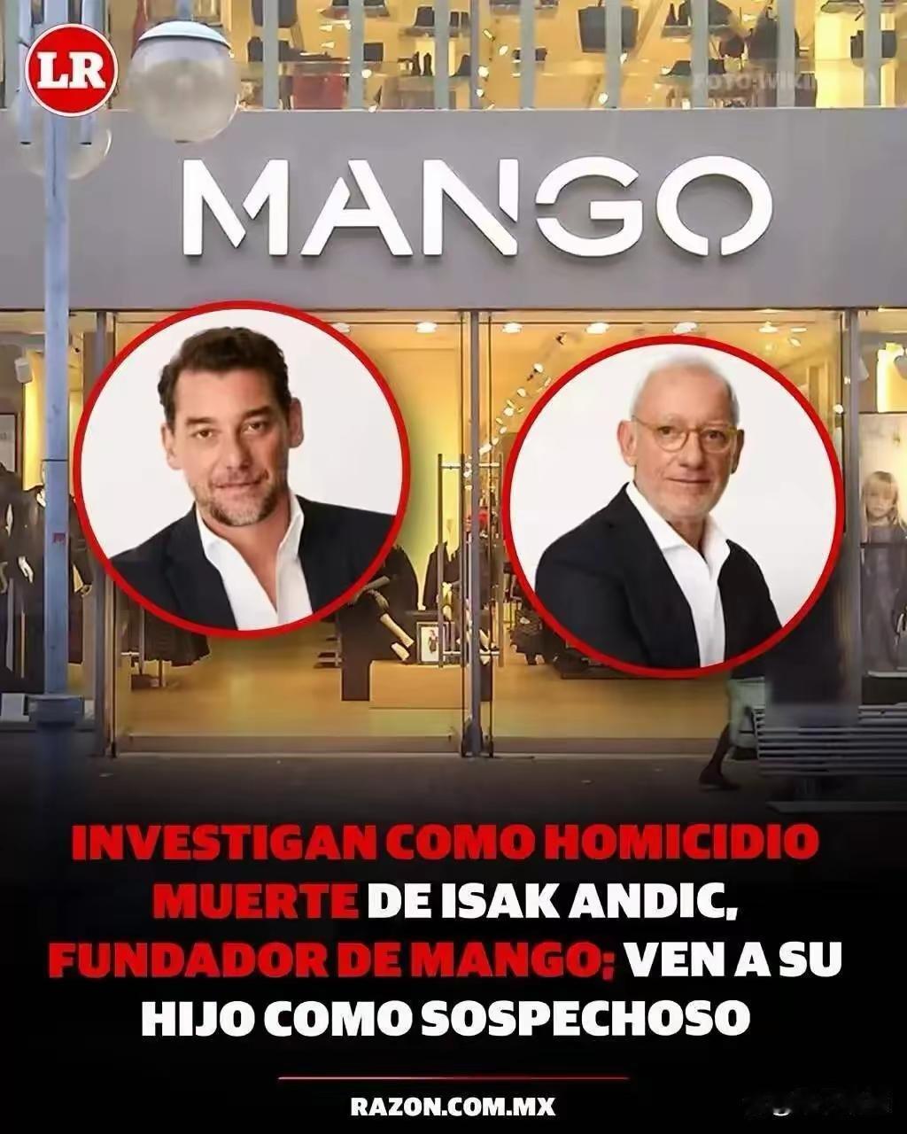 西班牙服装巨头Mango创始人坠崖身亡 80后儿子成头号嫌疑人:西班牙服装巨头Mango创始人伊萨克•安迪奇去年12月与长子乔纳森徒步时从150米峡谷坠亡,初判意外。因乔纳森证词矛盾、与现场不符,警方9月底将其列为谋杀案主要嫌疑人,调查财务遗产等。安迪奇71岁,家族资产超600亿元,Mango是全球快时尚品牌,曾入华门店达200家。