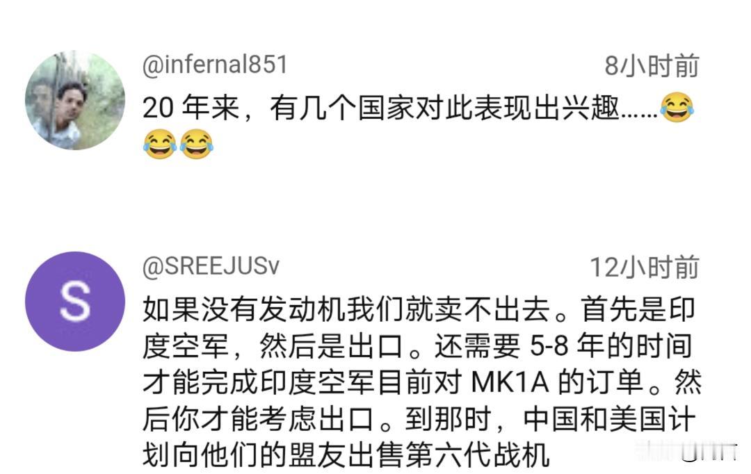 多国要买“光辉”战机?别说其他老外,此刻就连印度网友都破防了。 10月18日,印度斯坦航空CEO在接受印媒采访时表示:已经有多个国家对“光辉”Mk1A战斗机表示出了浓厚的兴趣。 该机是“光辉”战机的最新改型,就在前一天刚刚完成了首飞。据印媒透露,其航电系统和武器都进行了升级,达到了四代半战机的水准。 闻讯后的印度网友不淡定了。他们认为,连自家定单都难以完成,更别说出口了…