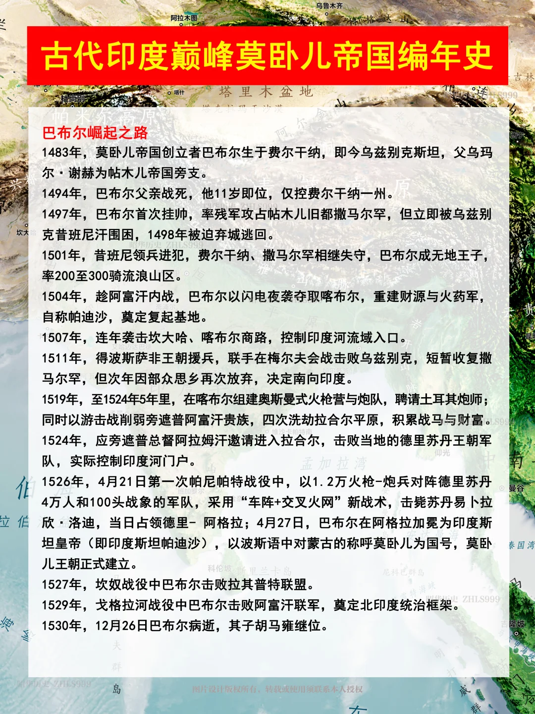 1494 年,巴布尔父亲战死,他 11 岁即位,仅控费尔干纳一州。