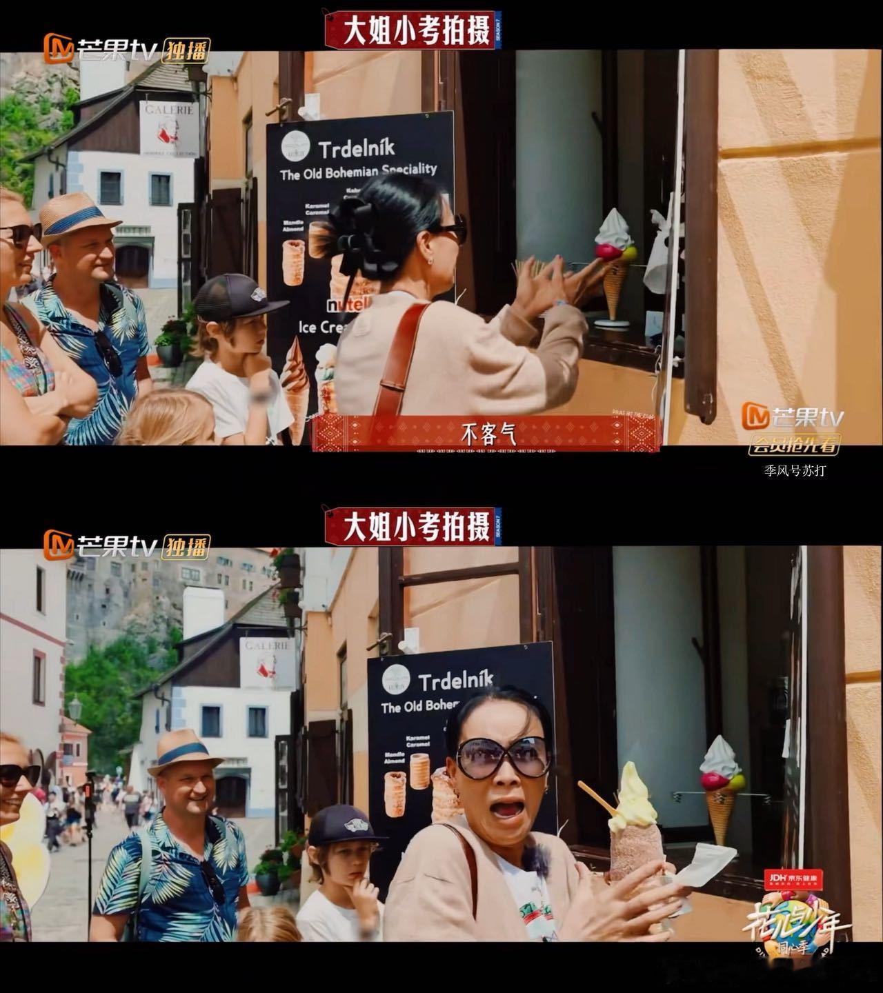 英子天选喜剧人那英真的是天选喜剧人没跑了!买冰淇淋居然拿到个空面包筒,姐满怀期待接过来,下一秒就一脸懵地盯着空壳子发愣