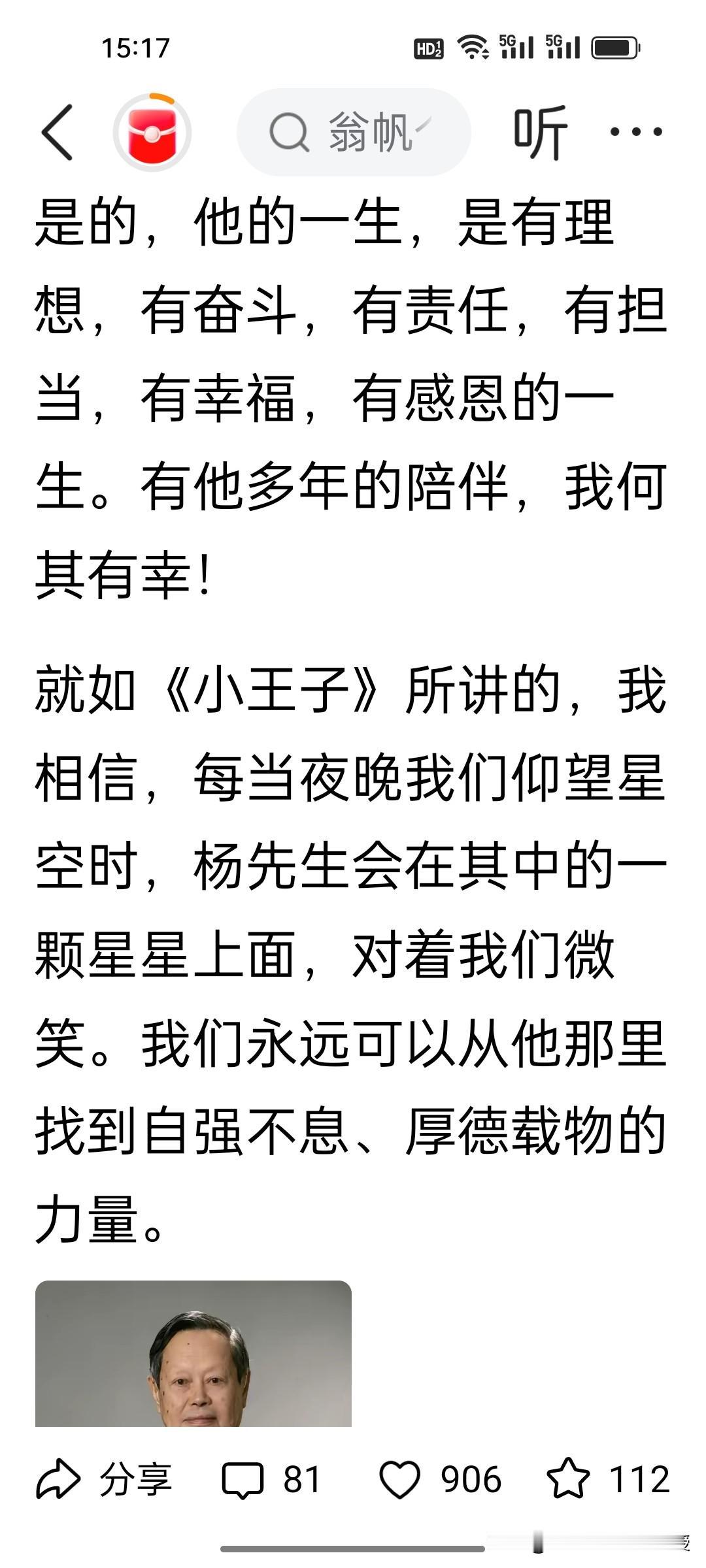 家国情怀,相濡以沫。杨先生这一生圆满幸福,值得珍惜。