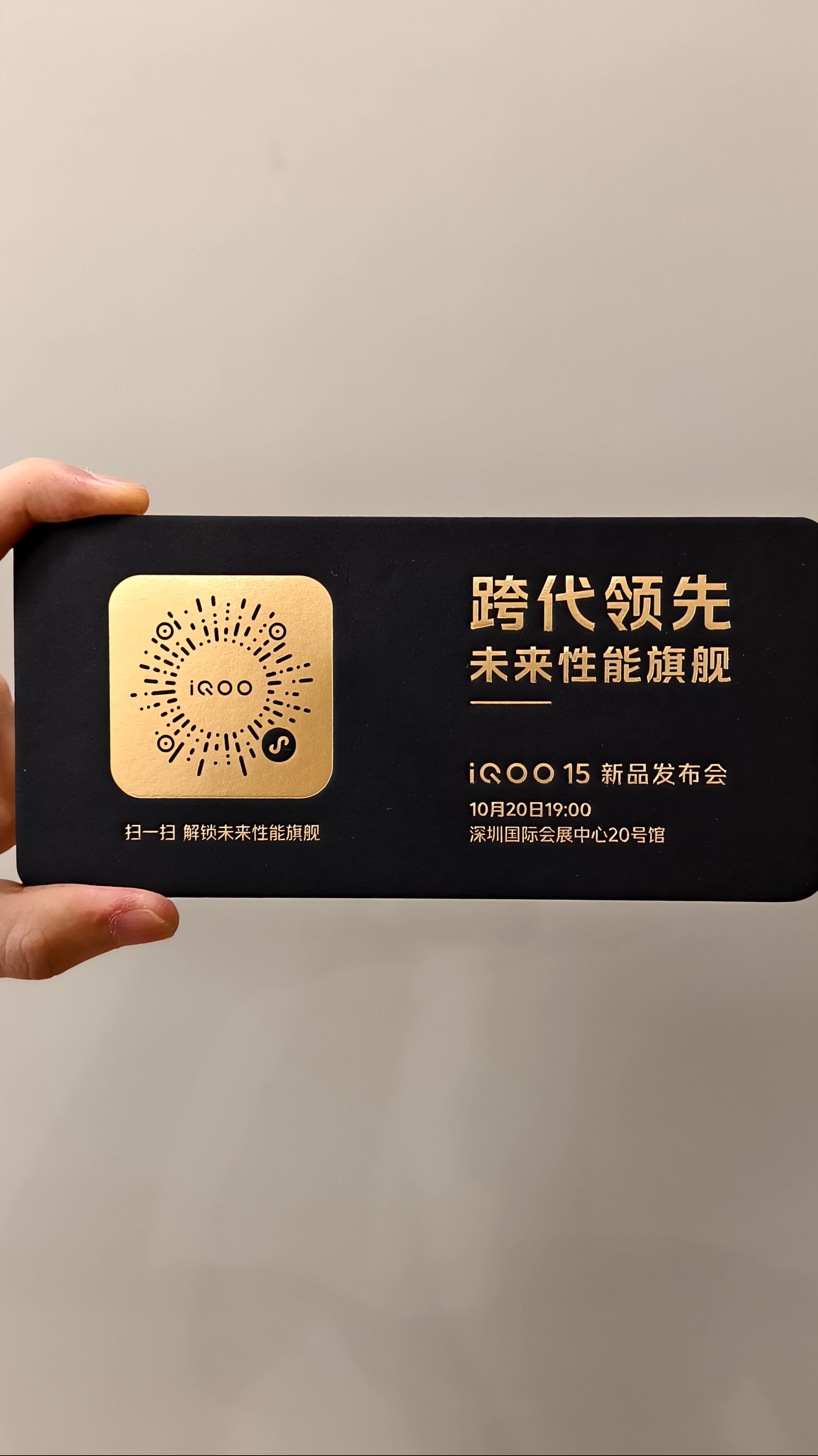 收到了iQOO15的发布会邀请函,明天晚上19点深圳国际会展中心,见证跨代领先未