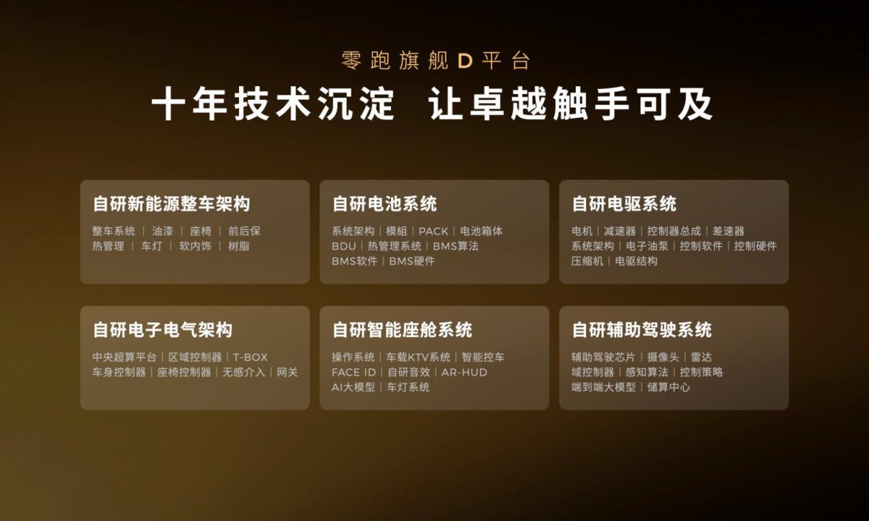 为什么零跑不用华为乾崑方案? 上周,零跑发布旗舰D平台,带来不少看点,也引发了一些争议。其中零跑高管曹力在后续采访中提到,零跑不会用华为乾崑辅助驾驶系统,让一些网友产生了不解,毕竟大家都知道目前在辅助驾驶这个领域,华为是站稳第一梯队且位居前列。 不过,零跑这个做法和华为技术先进与否没有直接关系,零跑十年以来一直坚持全域自研,整车Bom成本65%的核心零部件均是自研自造,包括智能辅助驾驶,被称之为智能汽车的灵魂,是未来角逐的关键,作为现有的新势力销冠,也旨在发展为世界级车企的零跑而言,将竞争的主导权交到他人手里,肯定是零跑不愿意见到的。 退一步讲,目前零跑的辅助驾驶技术发展已经很不错了。零跑这些年在辅助驾驶方面投入了大量努力,B系列、C系列通过升级优化在10来万市场已经做到激光雷达端到端辅助驾驶,兑现科技普惠。现在D平台无论是硬件还是软件再上一个台阶,自然没有外采的道理。零跑汽车零跑D平台首款车型D19发布