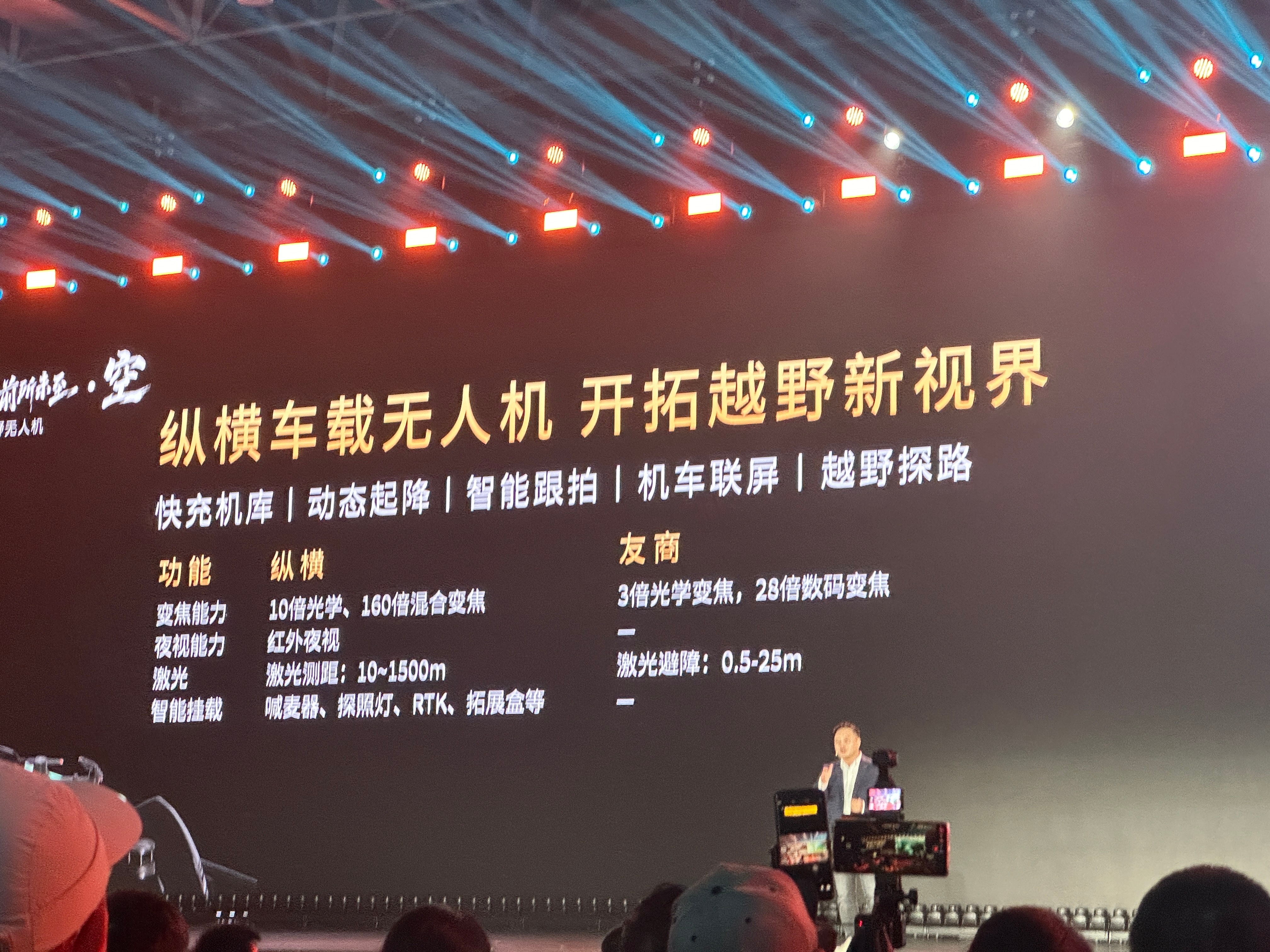 纵横G700作为一辆越野车,不仅具备越野的所有功能,还拥有IP68级防水,发动机泡水48小时都能启动,全域密封系统防水防噪,除此之外它还有个车载无人机变焦,夜视能力强,可以用来探路。