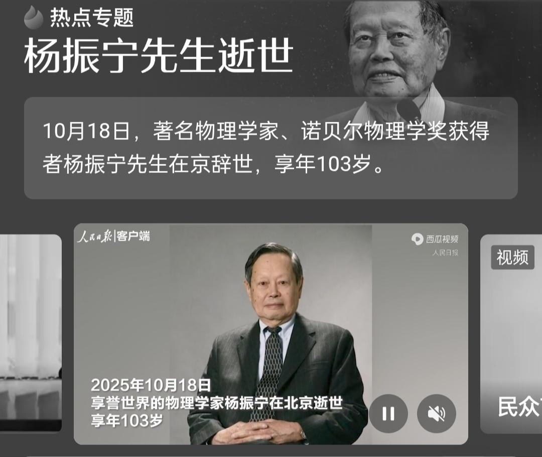 吊杨翁赋 癸卯季秋,惊闻星陨,余心摧折,遂临书案。念昔有陈思王作赋洛川,感神人之遇;今余追怀泰斗,悼鸿儒之殇,爰作斯赋。 余自束发,便闻翁名。其学也,如昆仑之天柱,撑擎物理乾坤。昔在昆华,沐联大之风;既至芝城,承费米之教。旋入普林斯顿,遂启规范之章。其思也,翩若神骏骋野,婉若灵犀贯空。“杨-米尔斯”之论出,如秋菊曜霜,开规范场之新境;宇称不守恒之说立,若春松挺崖,破物理界之旧封。髣髴兮若玄云蔽星,探粒子之幽秘;飘飖兮若流风回雪,揭宇宙之鸿蒙。远而望之,皎若朝霞映穹,与麦克斯韦、爱因斯坦相辉;迫而察之,灼若芙蕖出波,为粒子标准模型立基。 余慕其智,更敬其情。身居海外,心系故邦。七一年破冰归,见稼先而涕零,为故国之自强;数十年架桥通,引学子以归国,助科教之重兴。及老归清华,执鞭授业,八十高龄犹育桃李;献珍藏于学府,设室存文,百年心血尽付神州。其德也,如幽兰吐馥,泽被后学;其行也,若劲松立雪,坚守初心。 忽闻噩耗,天地含悲。昔之论道者,今已归道山。恨时光之不驻,怨人事之无常。忆翁“但愿人长久,千里共同途”之语,音犹在耳;念翁扶掖后学、兴邦济世之举,功在千秋。灵轜既驾,云车欲驰,鲸鲵为御,文鱼为卫。挥手自兹,神光渐隐。 于是余情怅然,若有所失。执卷沉思,恍见翁颜。或于讲堂之上,谆谆教诲;或于书斋之中,默默耕耘。夜耿耿而不寐,思绵绵而增慕。望长空而浩叹,惜巨星之陨落。惟愿翁名长在,如日月昭昭;翁学永续,似江河汤汤。揽笔涕零,不能自已,遂作此赋,以寄哀思。 杨振宁先生逝世 物理学家杨振宁逝世 杨振宁对我国的贡献有多大