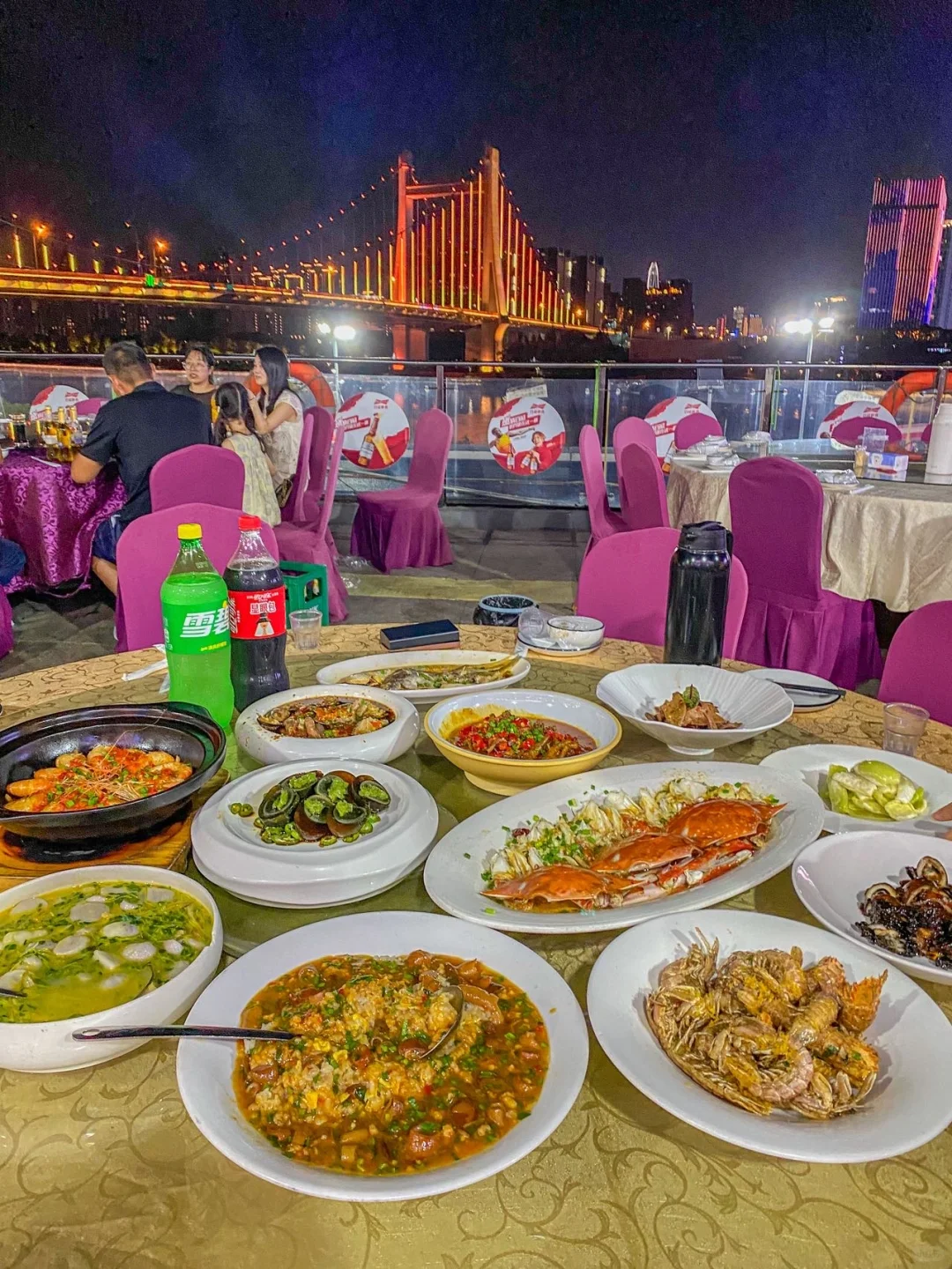 而且抬头就能看到庆丰桥,晚上坐在露天位,吹着晚风,嘬着虾,听听歌,真的太安逸了!