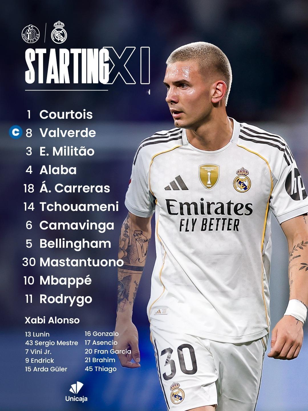 贝林厄姆首发赫塔菲vs皇马