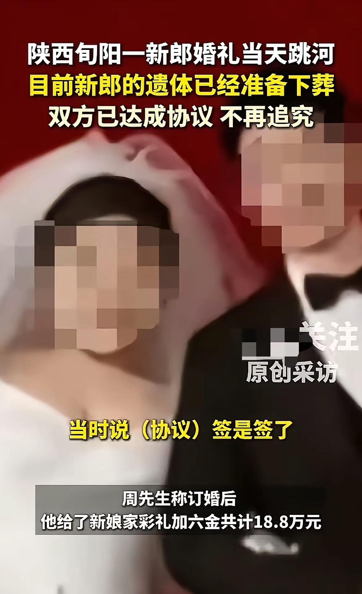 跳河新郎父母估计特别憋屈! 虽然女方把18.8万彩礼和六金都退了回来, 他们也不打算追究女方的责任,但也不得不接受永远失去儿子的事实。 早知道儿子不顾反对也要婚的姻,最后却成了要他命的坎儿。他们当初就不应该松口点头同意! 谈了五年恋爱,两人从校园到工作,儿子早把对方当家人了。 谁能想到啊,那五年的感情,曾经是老两口嘴边的骄傲。还记得儿子第一次带女孩回家,是大三的暑假,姑娘穿着白裙子,手里拎着儿子爱吃的草莓,怯生生地喊“叔叔阿姨”。那时候儿子就拍着胸脯说“以后非她不娶”,老两口看着两个孩子眼里的光,心里也软乎乎的——毕竟是从校服到职场的感情,一起在图书馆抢过座,一起挤过早晚高峰的公交,连出租屋里的小书桌,都是两人凑钱买的。 后来谈婚论嫁,老两口不是不同意,是真的犯难。家里条件普通,18.8万彩礼要掏空积蓄,六金更是得东拼西凑。儿子那阵子天天跟家里磨,说“她爸妈养她不容易,这点要求不算多”,甚至偷偷去打了两份工,晒得黢黑回来,手里攥着攒下的几千块,说“再加点就够了”。老两口看着儿子红着眼眶的样子,心一横就松了口——哪能让孩子因为钱,丢了五年的感情啊? 可现在,空荡荡的房间里,还留着儿子准备婚礼的东西:墙上贴着两人选的婚纱照样片,衣柜里挂着没来得及穿的西装,书桌上放着写满流程的笔记本,连喜糖盒子都折好了大半。老两口每次路过,都忍不住摸一摸,眼泪就止不住地掉——当初要是再坚持一下,要是劝儿子“别急,咱们慢慢商量”,要是早点跟女方家好好谈谈,是不是就不会这样? 其实谁都清楚,这事儿不是彩礼的锅,也不是五年感情不够深。可能就是婚前那阵子,两边都绷着劲儿:女方家觉得“该有的不能少,是面子也是保障”,儿子觉得“答应了就要做到,不能委屈她”,偏偏没人坐下来好好说一句“咱们能不能各退一步”。男孩太好强,把压力都自己扛着;女孩或许也有难处,没看透他藏在笑容里的崩溃。就这么一点点误会,一点点硬撑,最后把好好的姻缘,变成了天人永隔的悲剧。 老两口现在不怪任何人,就是悔。悔当初没多跟儿子聊聊心里话,没告诉他“钱不够咱们可以再想办法,别自己扛着”;悔没主动找女方家长好好谈谈,没说“孩子感情好,咱们别让钱成了绊脚石”。那些退回来的彩礼和金饰,被他们锁在抽屉最里面,看着就扎心——这些东西再贵重,也换不回那个喊着“爸妈”进门的孩子了。 说到底,婚姻从来不是两个人的事儿,也不是一堆钱和首饰能衡量的。真正重要的,是遇事时愿意低头的包容,是难过时愿意倾诉的信任,是两边家庭都愿意为了孩子妥协的真心。要是当初多一点理解,少一点硬撑,多一点沟通,少一点沉默,那个满心欢喜盼着结婚的男孩,现在应该正牵着新娘的手,笑着给爸妈敬茶吧? 各位读者你们怎么看?欢迎在评论区讨论。