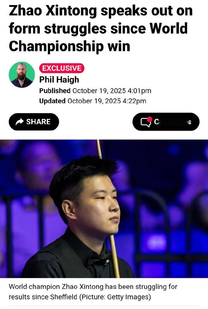 斯诺克:2025北爱尔兰公开赛正赛赵心童回应首轮出局! 北京时间10月19日,2