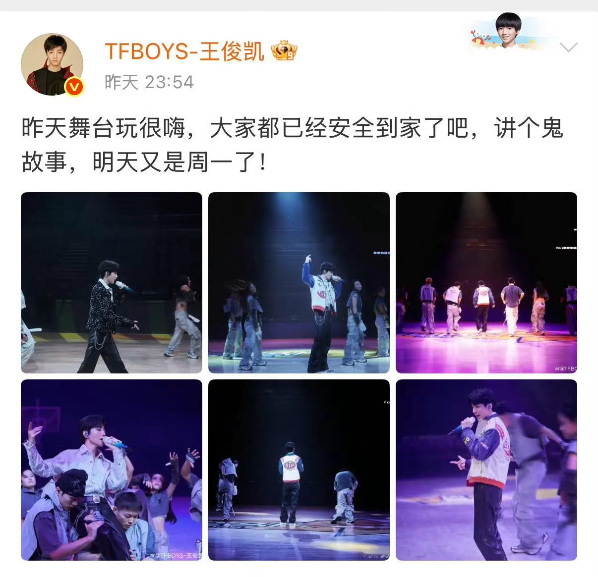因为王俊凯任嘉伦的粉丝灯牌占比引发热议,所以王俊凯发的都是彩排照?没有灯牌背景!