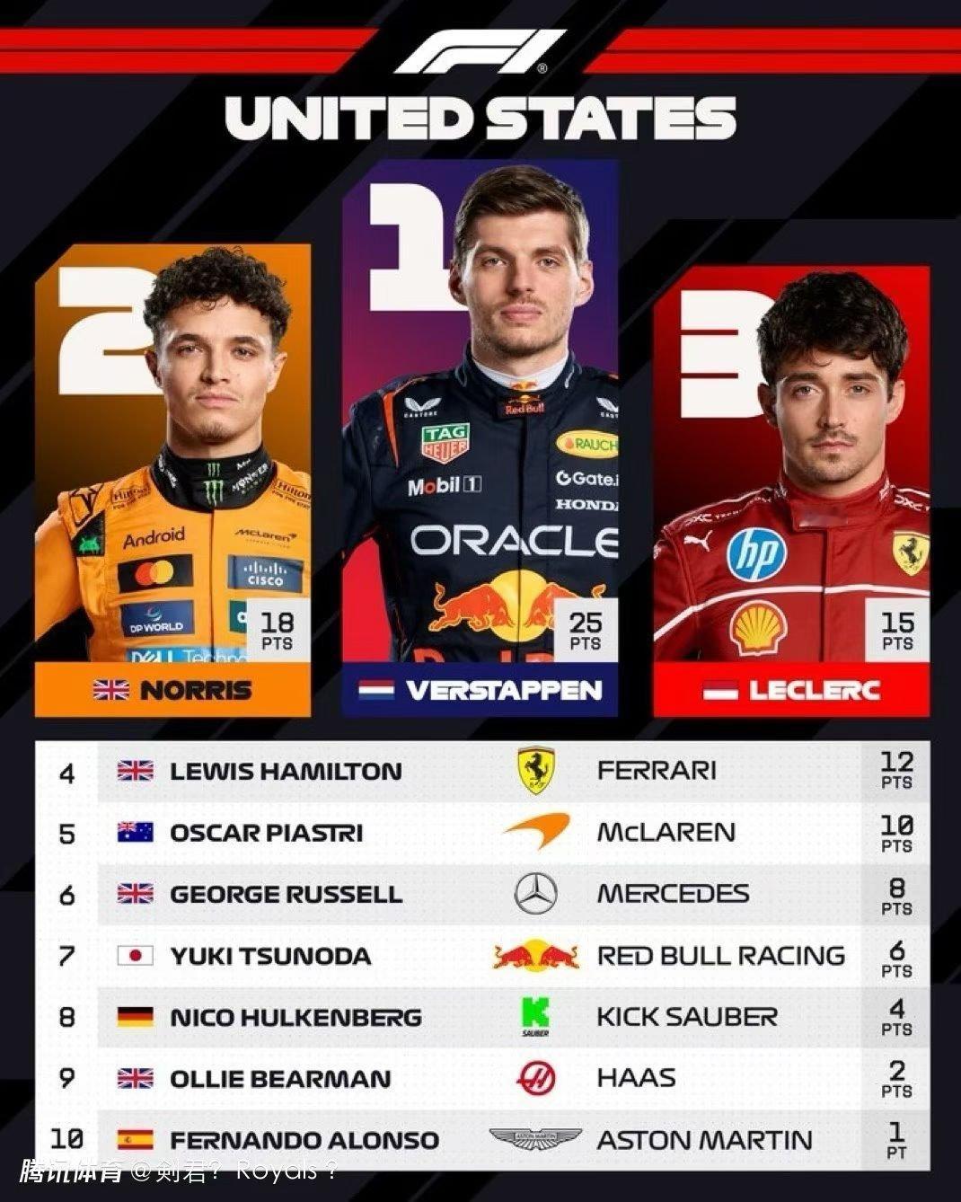 天选之子,最后几站,MAX估计更强势,迈凯伦两个年轻人估计又会犯错,主要是感觉现在迈的车没这么强了阿~个别赛道还输~2025F1美国大奖赛