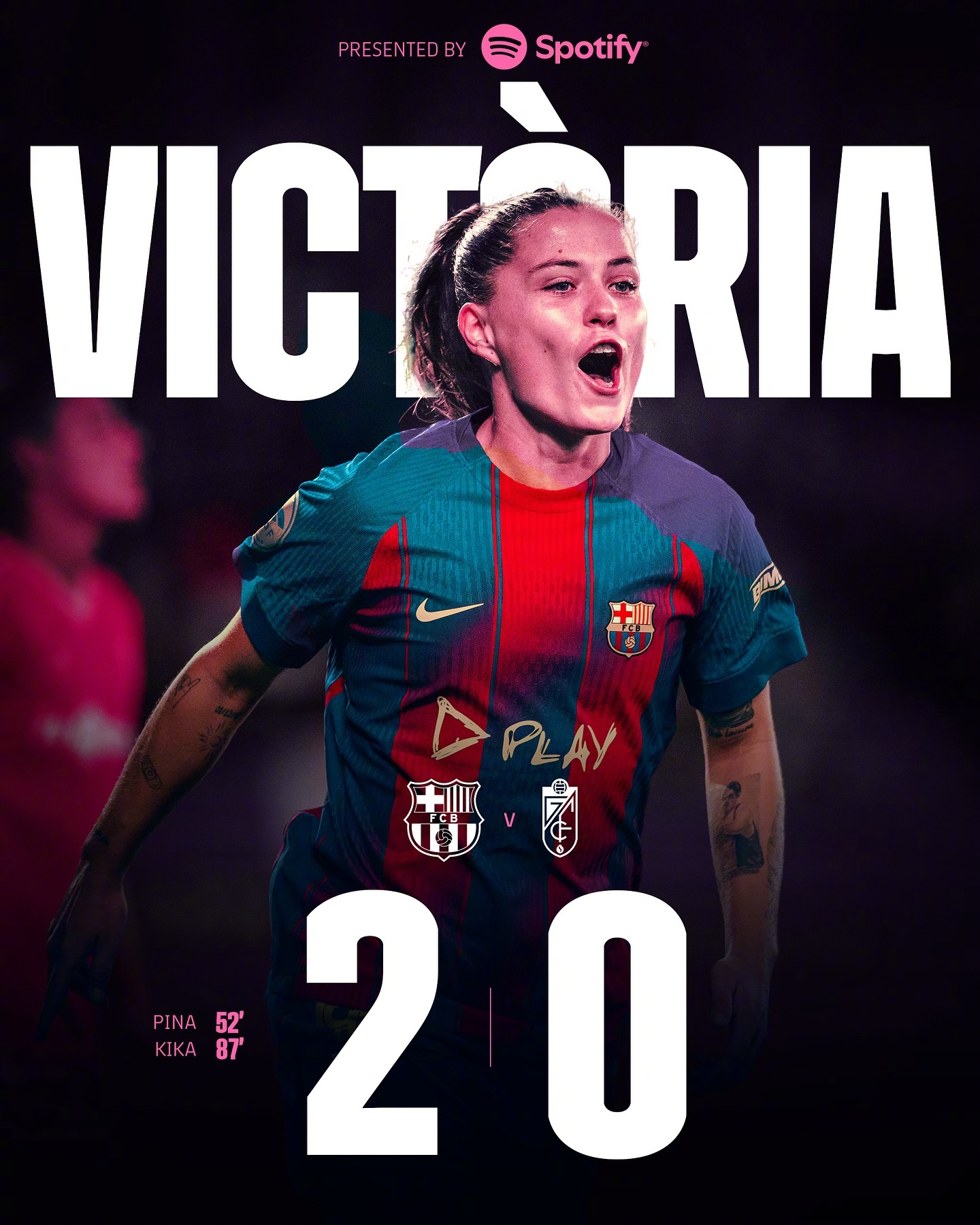💗巴萨×特别联名球衣首次亮相!巴萨女足2-0战胜格拉纳达女足,皮娜与基卡分别立功⚽⚽联赛八战八胜,完美领跑❣️
