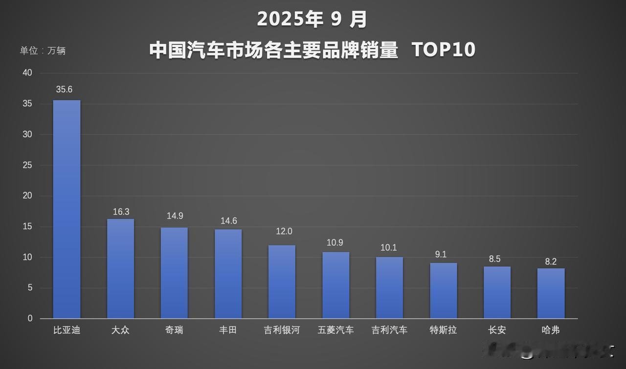 金秋车市中,比亚迪表现亮眼。1-9月新能源累计销量326万辆,完成全年目标71%,稳居中国车企集团榜首,王朝丨海洋品牌同期销298.5万辆,拿下单一品牌冠军。 智能化上,“天神之眼”辅助驾驶系统发力,搭载车型累销超170万辆,9月新增29.5万辆,日均智驾数据里程破1亿公里,9月智驾车型销量为第二名4倍以上。 全球化提速,1-9月海外出口超70万辆,占总销量22%,9月海外销量同比增107%,第1400万辆新能源车在巴西下线。凭借多维度优势,比亚迪全维度领跑市场,彰显中国新能源实力。