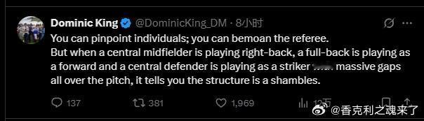 但当一名中场球员在踢右后卫,一个边后卫在踢前锋,而中后卫在踢中锋,场上处处是巨大空当时——这已经说明整个体系彻底崩塌了。