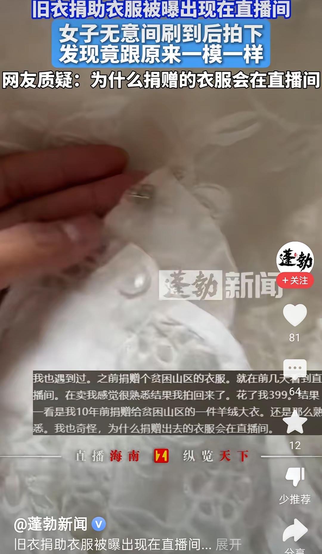天呐!这剧情也太抓马了吧!某女子刷直播间时,竟发现一件羊绒大衣是自己十年前捐