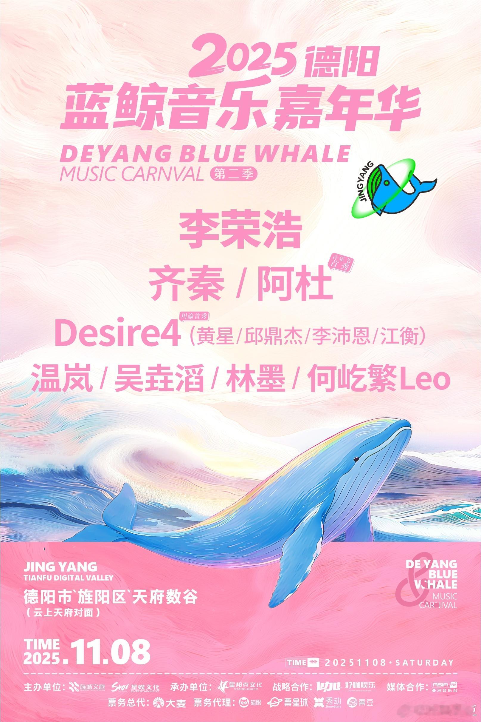 德阳蓝鲸音乐嘉年华预售开启 德阳蓝鲸音乐嘉年华今日正式启动预售!11.08让我们相约旌阳,在金色阳光下聆听跃动的音符。你最期待哪位音乐人的现场表演?/ / / ) / / /