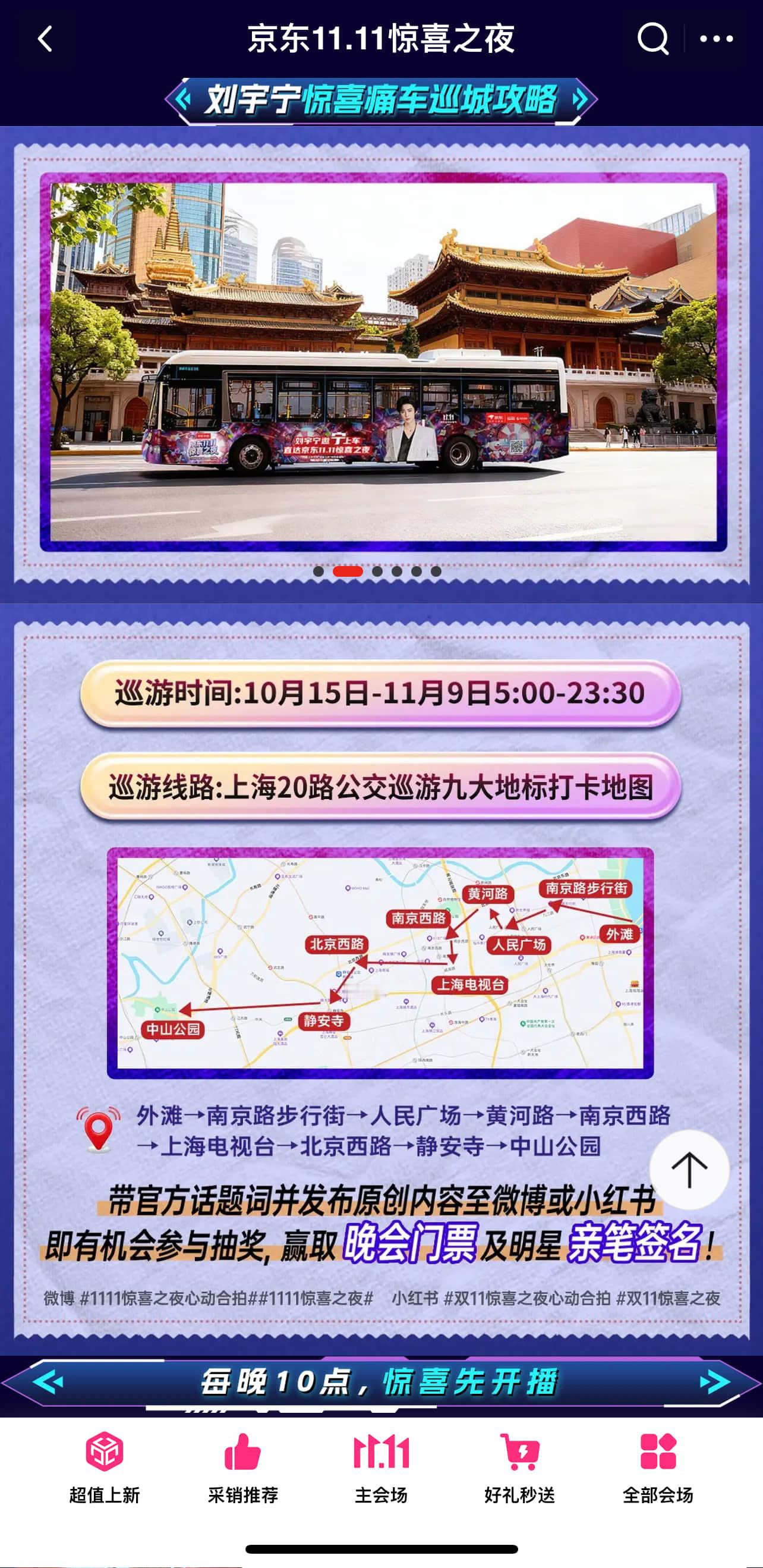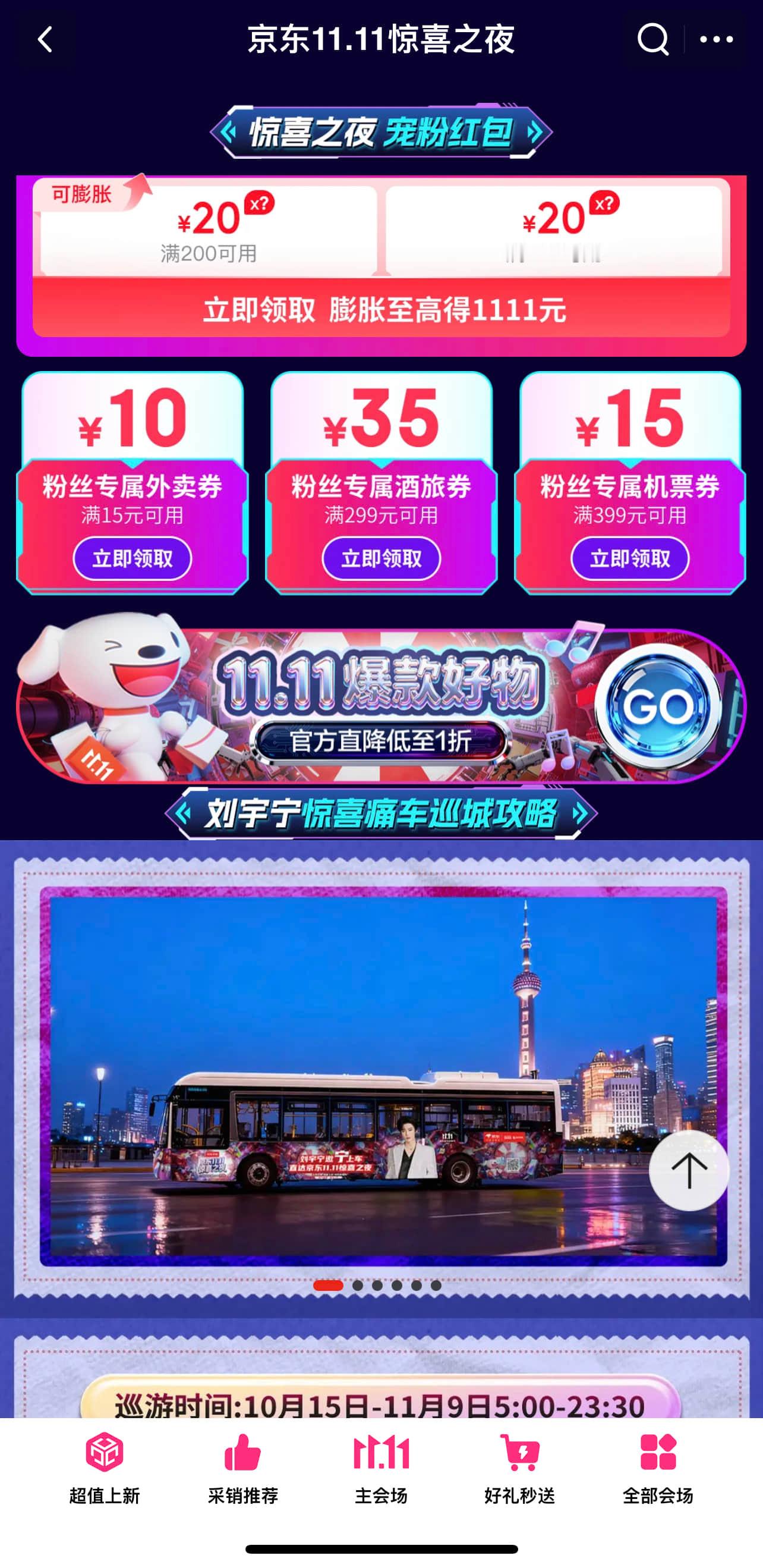 有趣的灵魂都在哪?我猜20号那天都会聚集在京东!因为11.11惊喜之夜的阵容要官宣了,还有刘云宁的LIVE,简直是大型粉丝面基现场!想加入这场狂欢的,10月20日,多重玩法赢惊喜之夜门票,PLUS会员1分钱抽门票、订酒店送门票、在京东外卖频道点餐赢双11晚会门票,机会大大的,太有趣了! 京东11.11 又好又便宜今晚8点京东11.11更便宜 刘宇宁京东门票 戳: