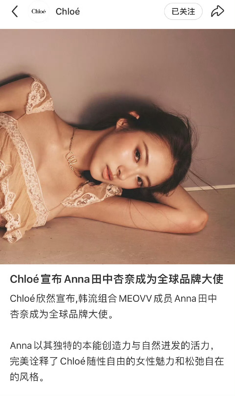 Meovv成员Anna成为Chloé全球品牌大使 ​​​