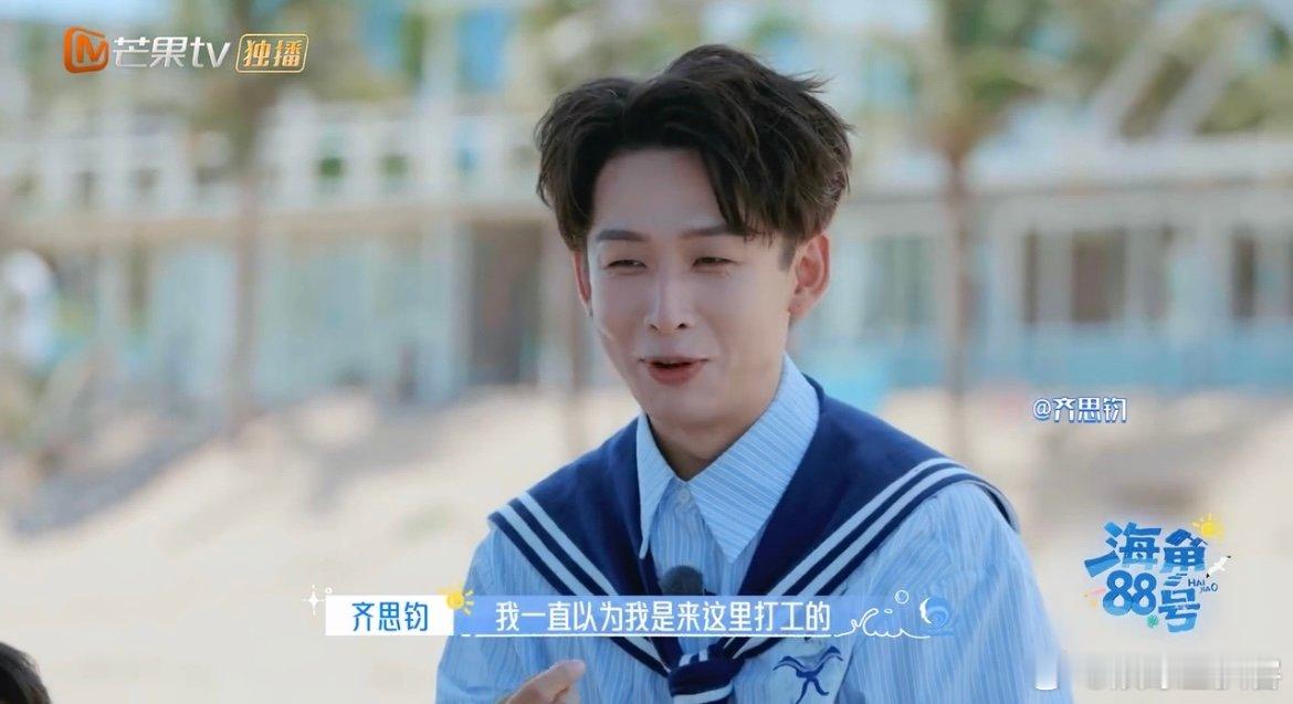 齐思钧以为打工实则放假 蓝色海洋风穿搭备好,职场模式一键启动,结果被告知是度假福利?这波反转惊喜拉满,果断切换放松频道!海角88号