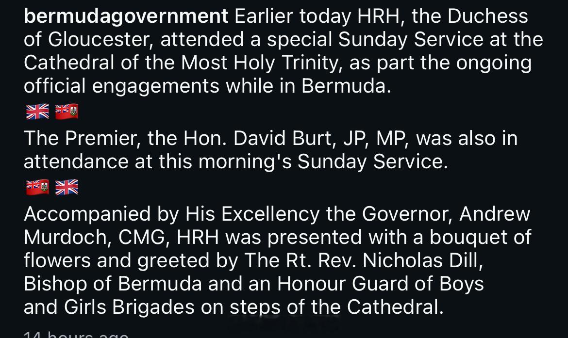 2025年10月19日,格洛斯特公爵夫人比尔吉特在百慕大访问圣三一大教堂⛪