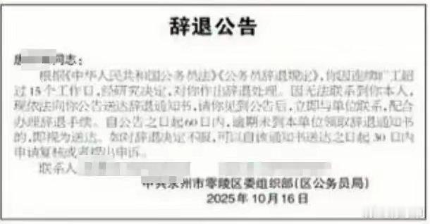 公务员连续旷工超15个工作日被辞退第一次看到公务员因旷工被辞退的新闻,以前听说开