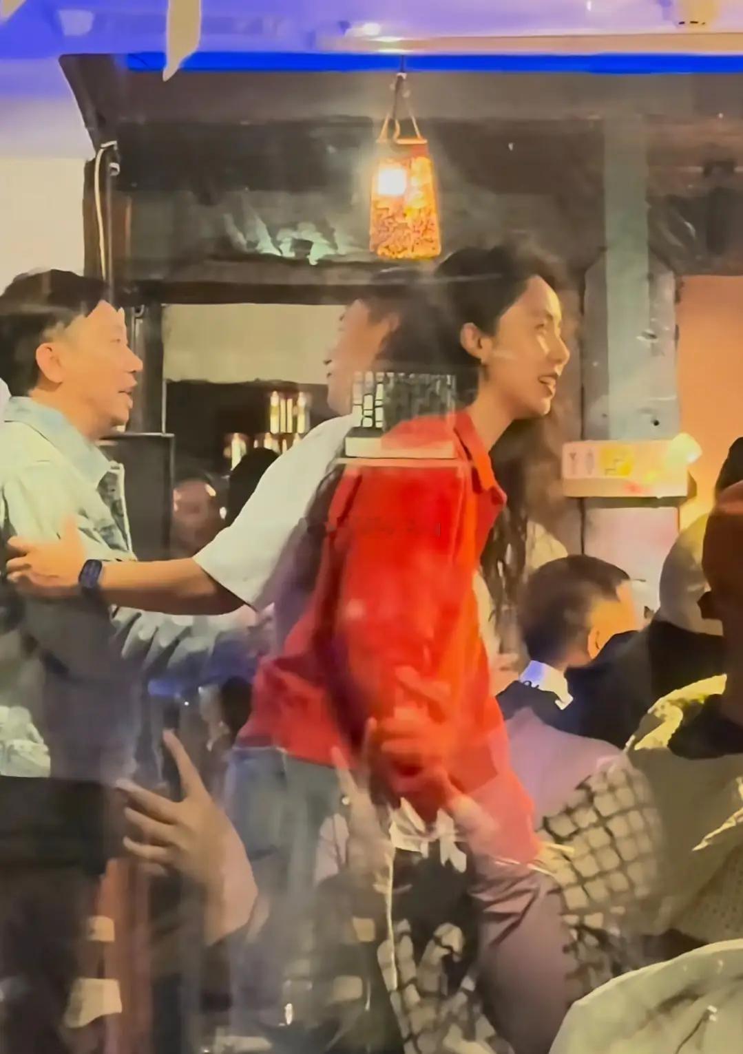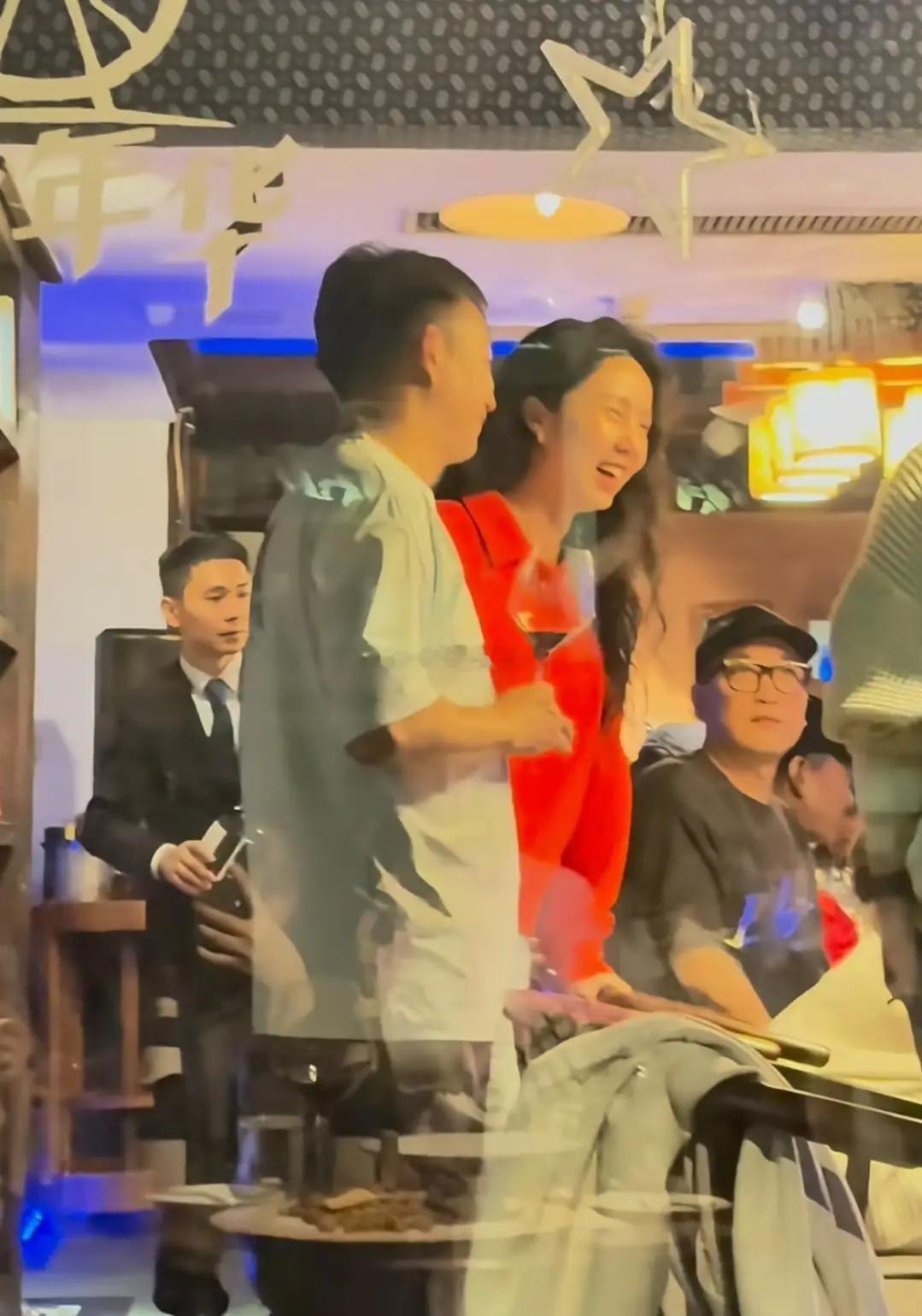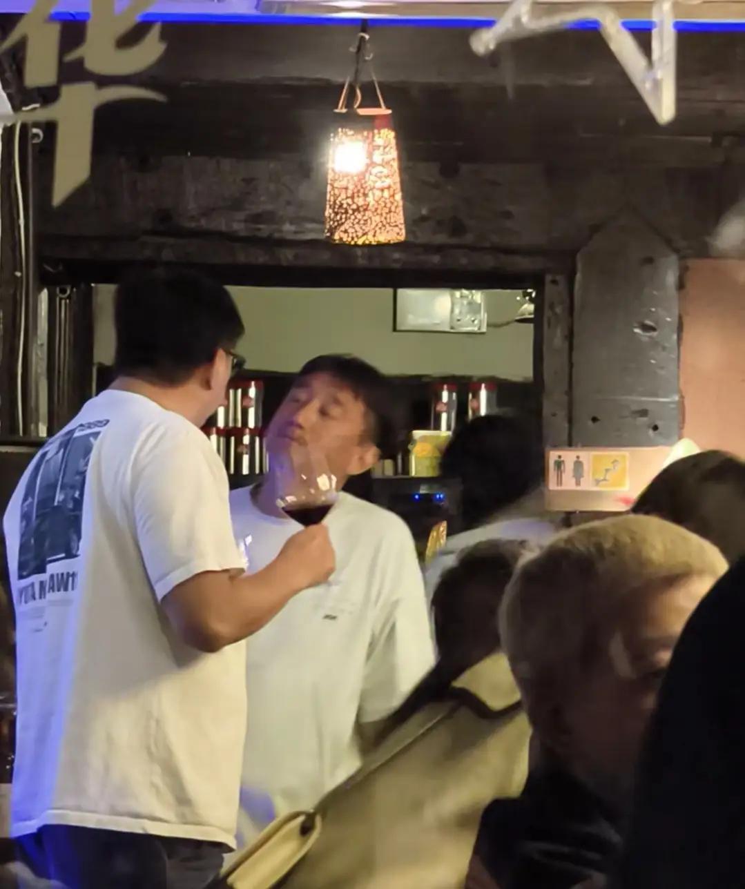 作为餐厅主人,黄磊全程如东道主般忙碌,穿梭于宾客间热聊举杯,笑容满面,看来这场聚会正是由他牵头。昏黄灯光下,刘欢扎着长发,白发依稀可见,黑色上衣衬得身形清瘦了些,身旁疑似戴锦华的身影戴着帽子,红色上衣格外惹眼,两人桌前酒杯林立,一瓶酒已见空底。