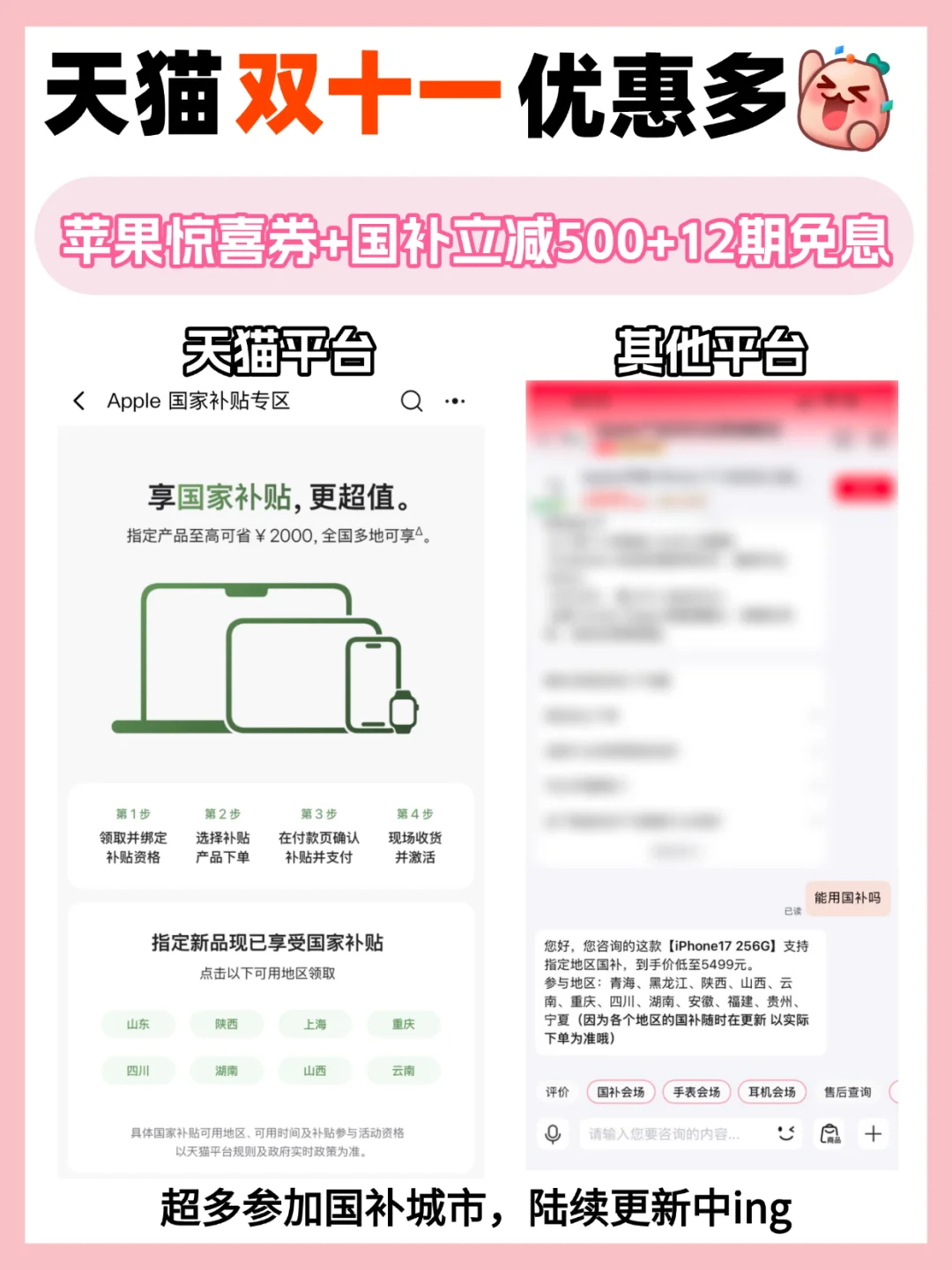 而且现在天猫国补地区超级多,远超其他平台的国补地区数量!