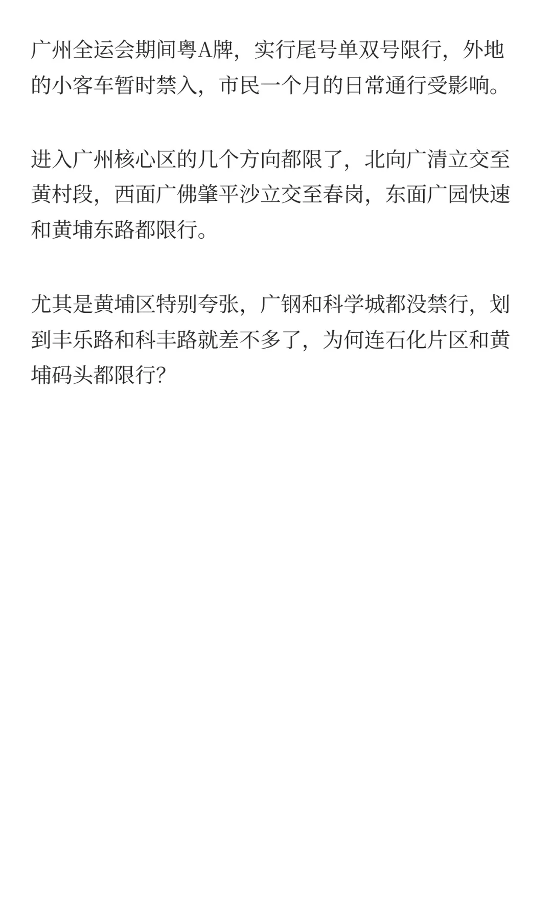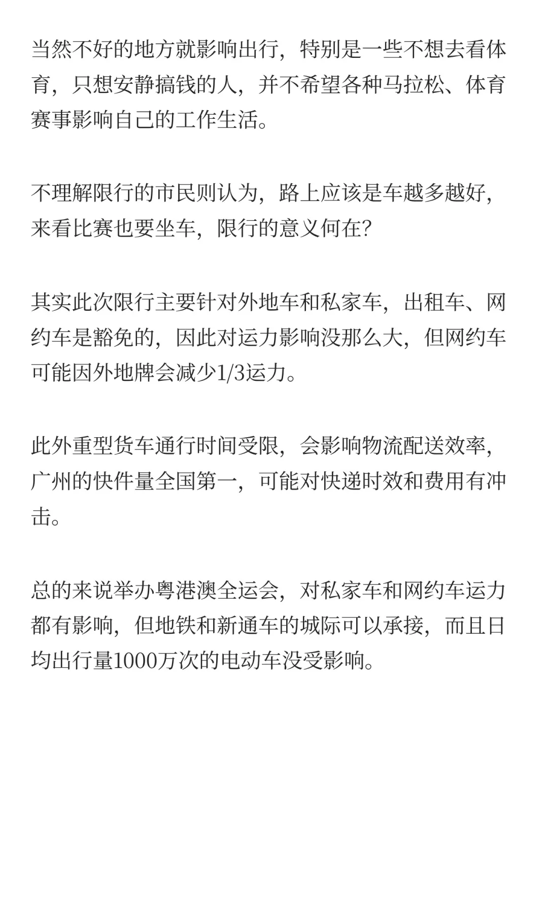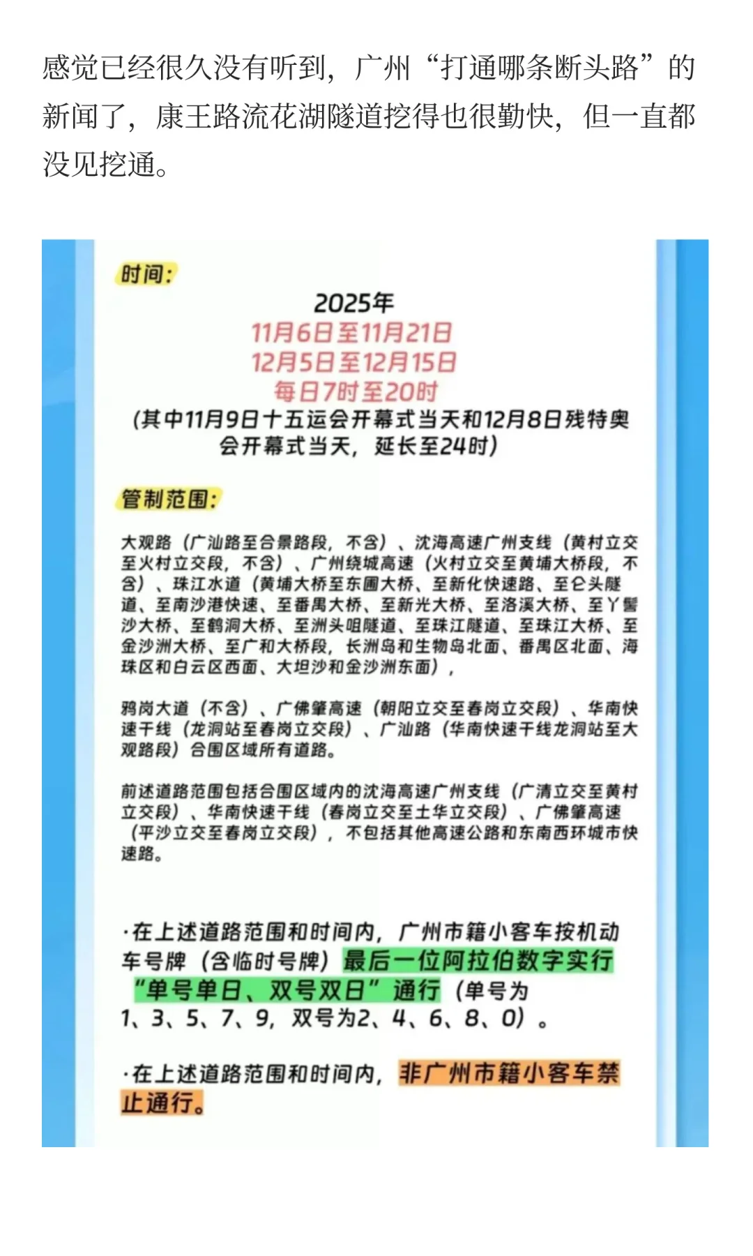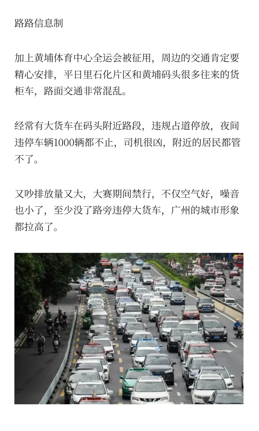 外地人又不是不知道堵,又不是开幕才来广州的,离谱的是残运还要限行