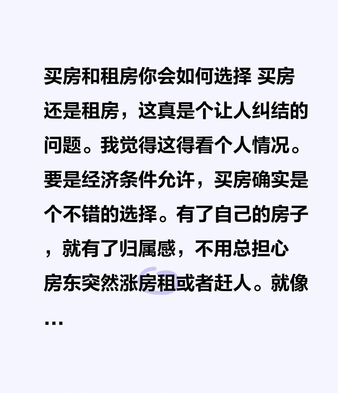 买房和租房你会如何选择买房还是租房,这真是个让人纠结的问题。我觉得这得看个人情