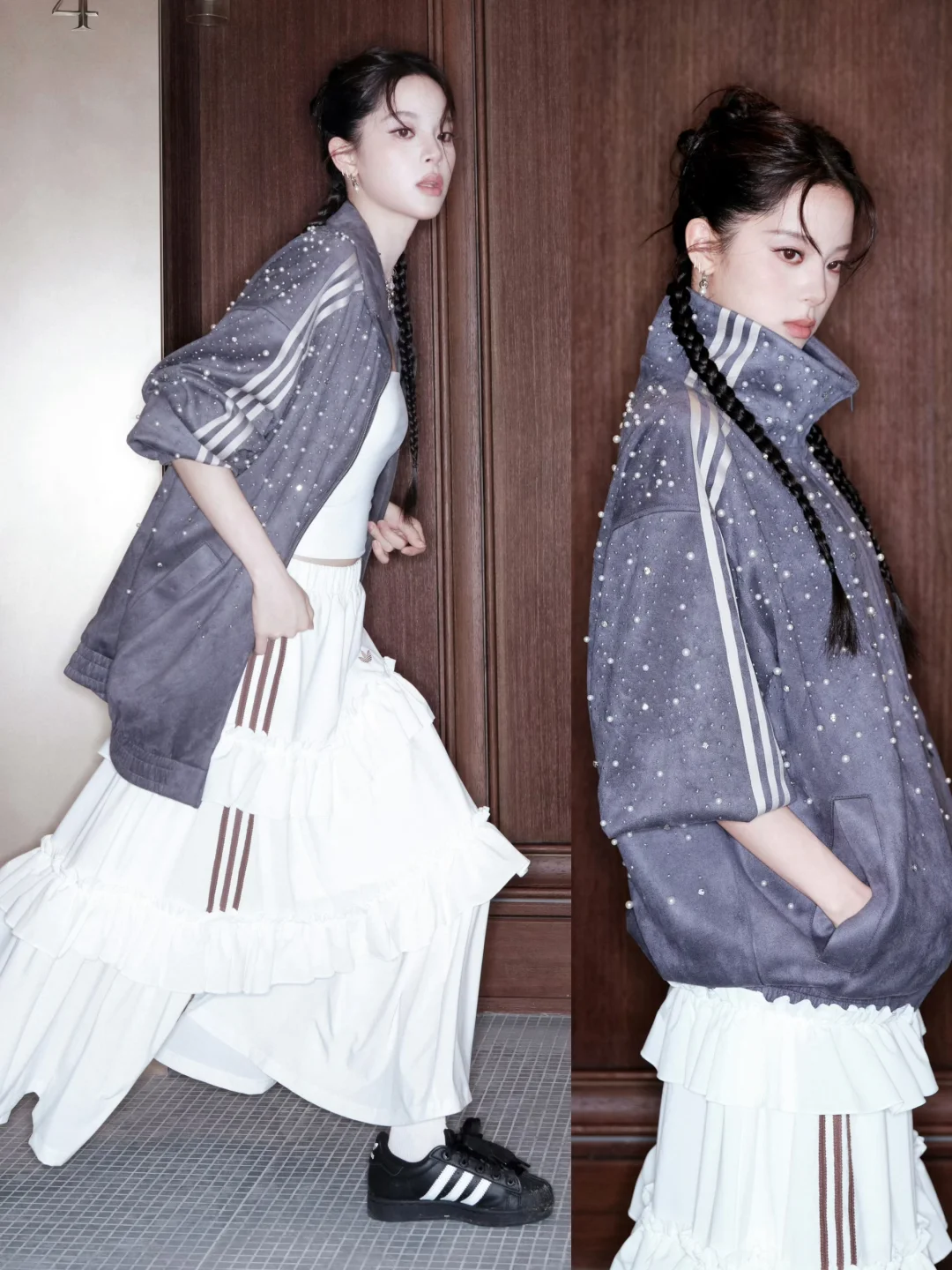 欧阳娜娜在2025「阿迪达斯创意呈献:POWER OF THREE 」上海时装周大秀上的造型又出圈了!新中式唐装外套自带东方韵味,内搭抹胸与长裙又添几分灵动,把运动风的活力与少女感的甜酷完美融合,镜头里的每一刻都在释放魅力,让人一眼就爱上这种混搭风格!