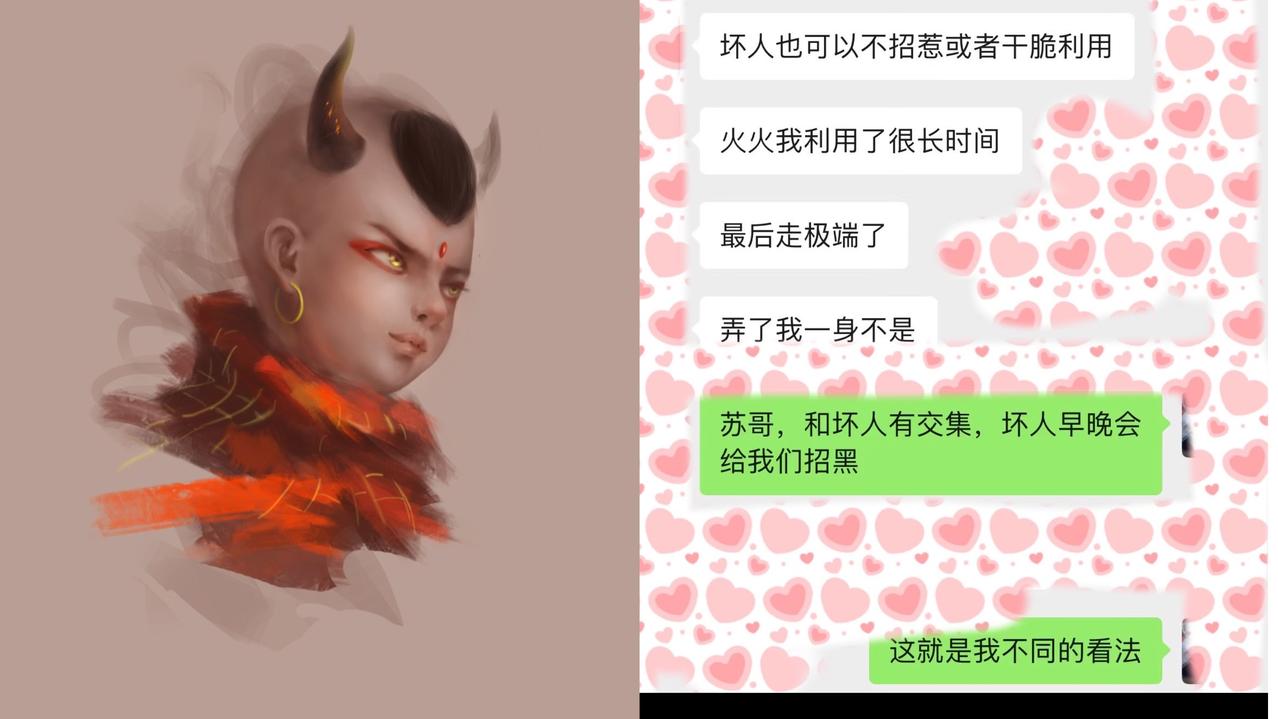 红孩儿是我们撕走的吗? 苏英雄如今张口就给人说,是我们把红孩儿和小螺号从他身边撕走了,是我们撕走了他身边的人,我们破坏了他的大智慧,我们就是四七的罪人。 诚然,红孩儿是苏英雄从杜方引进过来的,就像是猴子搬来的救兵一样,靠一句大娘还钱的口号吸粉无数,而且没少去苏英雄的直播间帮着张罗卖货。刚开始红孩儿还谦虚地说自己出身不好,而且小身板不抗揍,所以不参与许方主播之间的纷争,后来瞅准机会开始喷大米,从而演变成苏英雄对付东北帮的一个火力点,后续自己也策划了一场带货,可惜摆了一桌子样品,并不成功。 初识红孩儿是在我们的连麦直播间,突然间冒出一个叫小民的粉丝踊跃的刷了一些礼物,连续几天表现抢镜,后来有一天小民自报家门,原来他就是苏英雄引进来的红孩儿。既然别人多天低调示好,我们也热情的拉其上麦。结果红孩儿第一次在我们直播间公开亮相就让我们不要撕小萌主,说他也是支持当事人的,并建议女神能和小萌主握手言和。 所以说红孩儿和我们初次有交集就充当了小萌主的说客,大家并不认同他,自然不欢而散,其后他也没敢再来,而是趴苏英雄的直播间上麦帮人家卖货去了。 红孩儿有个奶妈叫老肥君,没少给他刷礼物,而老肥君又是大老师的老迷妹,当老肥君拿牛羊肉说事剑指许妈的时候,红孩儿出作品说坚决拥护老肥君这样的小主播维权,一副正义凛然的样子。 其后因为小辫君去京北,红孩儿不仅给小辫君刷礼物,还大夸小辫君好样,说小辫君虽然骂了李律,但是如今能去京北就是好样的,就是支持李律的,所以他也支持小辫君。 基于这两点,我们直播间的人均批判了红孩儿,认为其观点根本就站不脚,而红孩儿恼羞成怒,每天发十篇八篇的造谣诋毁我,发发删删持续多天,最终因为我回击他的作品中有狗带帽子的字眼而找上门,说我骂了他。 叔叔进行调解,意思是双方互有冒犯,本着追求网络清朗的目的,建议双方以后谁也不要再说谁,就此打住,而且双方均给叔叔写保证书进行约束,就此翻篇。结果这红孩儿倒挺有心机,单方面拍下我写的保证书大肆宣扬,说我被处罚了,被叔叔勒令写保证书了,是他取得了胜利。 其后苏英雄和红孩儿的蜜月期也宣告结束,同样闹掰了,听一姐姐说,原来红孩儿指责苏英雄在李律事出的时候还在聊梁柱,没有给李律的流量让路,两人因此吵了起来,所以苏英雄选择和红孩儿进行切割。我原本以为苏英雄是因为红孩儿挺老肥君触碰了支持许姚的底线而做的切割,不曾想两人的矛盾点原来在这里。 可是苏英雄如今是怎么说的呢,他说是我们把红孩儿从他身边撕走的,他恨死我们了,我们就是四七的罪人。 我依稀记得,苏英雄曾亲口告诉我,坏人可以不招惹或者干脆利用,他利用了红孩儿很长一段时间,是红孩儿最后走极端了,弄得他一身不是。很显然,在苏英雄看来,红孩儿就是坏人,无非他拿来利用一把,没想到最终搞得自己一身骚。 所以说,苏英雄能怪红孩儿是我们从他身边撕走的吗,他如今的行为叫不叫泼脏诬陷倒打一耙呢……