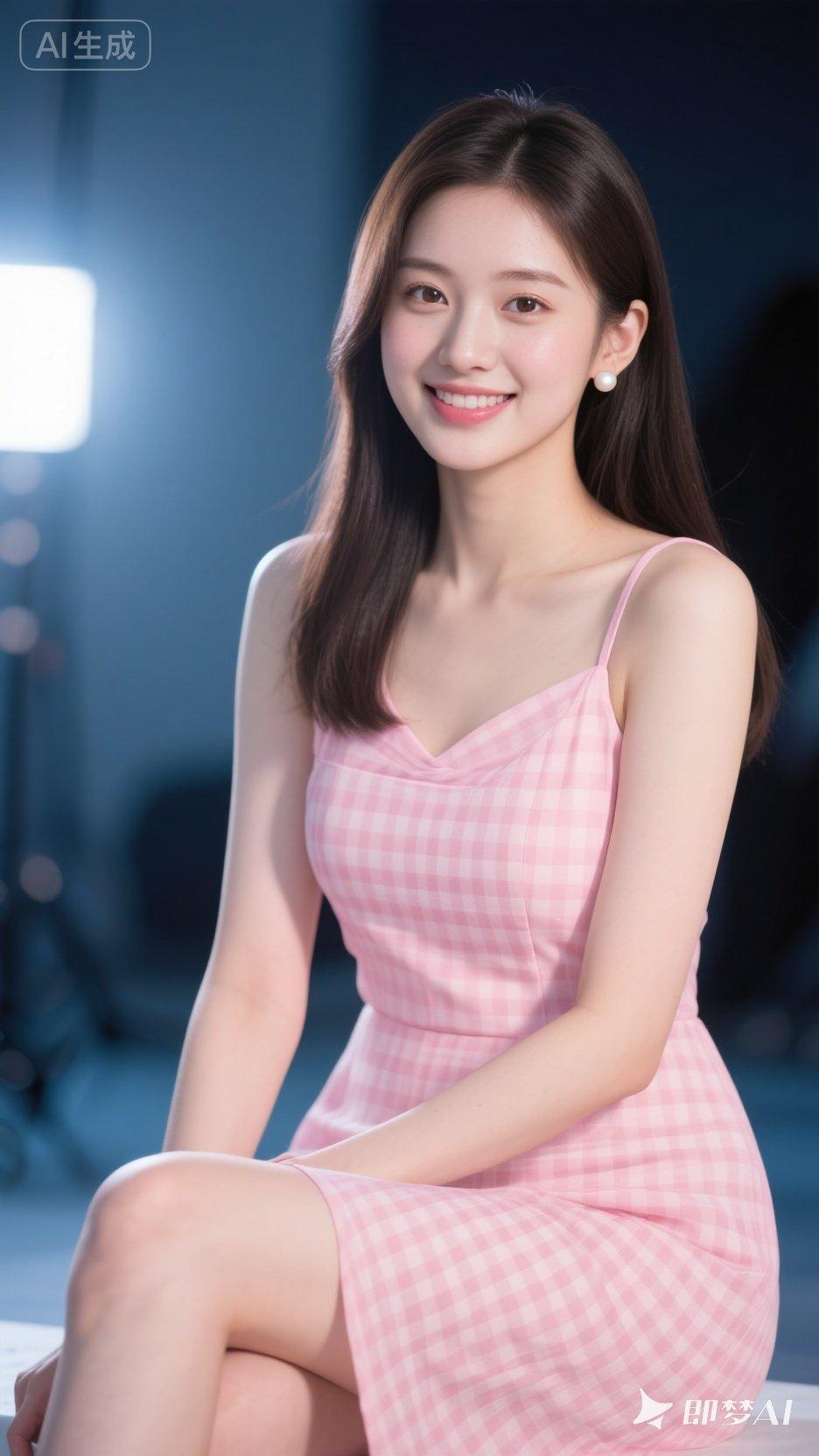 甜美粉裙少女,微笑如春风拂面