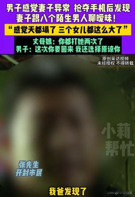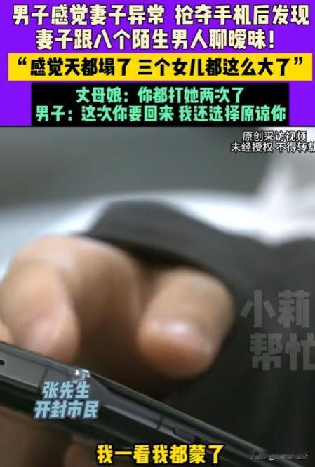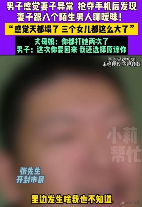 河南开封,男子在外打拼养家,父亲突然告诉他,妻子可能和别人有染。张先生急忙回家,发现妻子整天抱着手机,他想看手机的聊天内容,被妻子拒绝,两人发生扭打,男子把她手机抢过来一看,她跟8个陌生男人聊暧昧,叫别人老公,还偷偷跟男人见面,男子感觉天都塌了!他质问妻子,妻子却提出离婚后离家出走,张先生无奈找记者到丈母娘家,丈母娘称张先生打过女儿两次,不知女儿去向。 这天,张先生正忙着工作,突然接到父亲的电话。父亲在电话那头语气凝重,说感觉他妻子可能和别的男人有不正当关系。 张先生一听,心里“咯噔”一下,脑袋“嗡”地就大了,工作也顾不上了,匆匆跟领导请了假,就往家赶。 一路上,各种不好的念头在脑海里乱窜,好不容易到了家,一进门就看到妻子坐在沙发上,眼睛紧紧盯着手机,手指不停地滑动着屏幕,脸上还时不时露出奇怪的笑容。 张先生走过去,尽量让自己语气平和地说,把手机给我看看,妻子猛地抬起头,眼神里满是警惕,大声说,不行,这是我的隐私。 张先生这下彻底火了,你整天抱着手机,到底在和谁聊天? 妻子却死活不肯松口,两人你一言我一语,声音越来越大,最后竟然扭打在一起。 张先生毕竟是个男人,力气大些,一把就抢过了妻子的手机。 他拿着手机,越看越心惊。从八月份开始,妻子竟然和八个不同的男人聊得火热,言语间尽是暧昧,还背着自己去和这些人见面。 张先生感觉自己的天都塌了,他质问妻子,你到底要干什么? 妻子却一脸冷漠,既然你都知道了,那我们就离婚吧,说完,收拾了几件衣服,就头也不回地离开了家。 张先生看着空荡荡的家,心想到孩子还小,不能没有妈妈,于是决定找记者帮忙。 记者跟着张先生来到丈母娘家,丈母娘一看到他们,脸色就沉了下来。 还没等张先生开口,丈母娘就气呼呼地说,你还有脸来,你打过我女儿两次,她现在在哪里我也不知道。 张先生听了,心里一阵愧疚,他知道自己的脾气不好,有时候会冲动,但那也是因为太在乎妻子了。 他红着眼圈,对着镜头喊话,老婆,我知道错了,你回来吧,孩子不能没有你。 可几天过去了,妻子依旧没有回来。 张先生每天都沉浸在痛苦和自责中,他不知道这段婚姻还能不能挽回,也不知道妻子到底去了哪里。 张先生两次打妻子,已经属于家庭暴力。 家庭暴力是指行为人实施了殴打、捆绑、残害等暴力行为,对家庭成员身体造成伤害。 张先生打妻子,符合暴力行为,若造成妻子身体受伤,达到轻微伤及以上程度,就可能触犯治安管理处罚法。 治安管理处罚法规定,殴打他人的,或者故意伤害他人身体的,处五日以上十日以下拘留,并处二百元以上五百元以下罚款;情节较轻的,处五日以下拘留或者五百元以下罚款。要是造成妻子轻伤及以上,那就可能构成故意伤害罪,刑法规定,故意伤害他人身体的,处三年以下有期徒刑、拘役或者管制。 张先生妻子,与八个陌生男人聊暧昧、见面,从道德层面看是不道德行为。 从法律角度,如果只是单纯聊暧昧、见面,没有发生性关系等进一步行为,一般不构成违法犯罪。 如果她与这些男人以夫妻名义共同生活,那就可能构成重婚罪。 重婚罪构成要件是有配偶而重婚,或者明知他人有配偶而与之结婚。 她若与他人以夫妻名义生活,会受到什么样的处罚呢? 刑法规定,有配偶而重婚的,或者明知他人有配偶而与之结婚的,处二年以下有期徒刑或者拘役。 张先生打妻子行为,若构成治安违法,应给予相应治安处罚,若构成犯罪,应依法追究刑事责任。 张先生的妻子,若不构成重婚,主要是道德谴责,若构成重婚,应依法追究刑事责任。 您对这件事有什么看法呢?