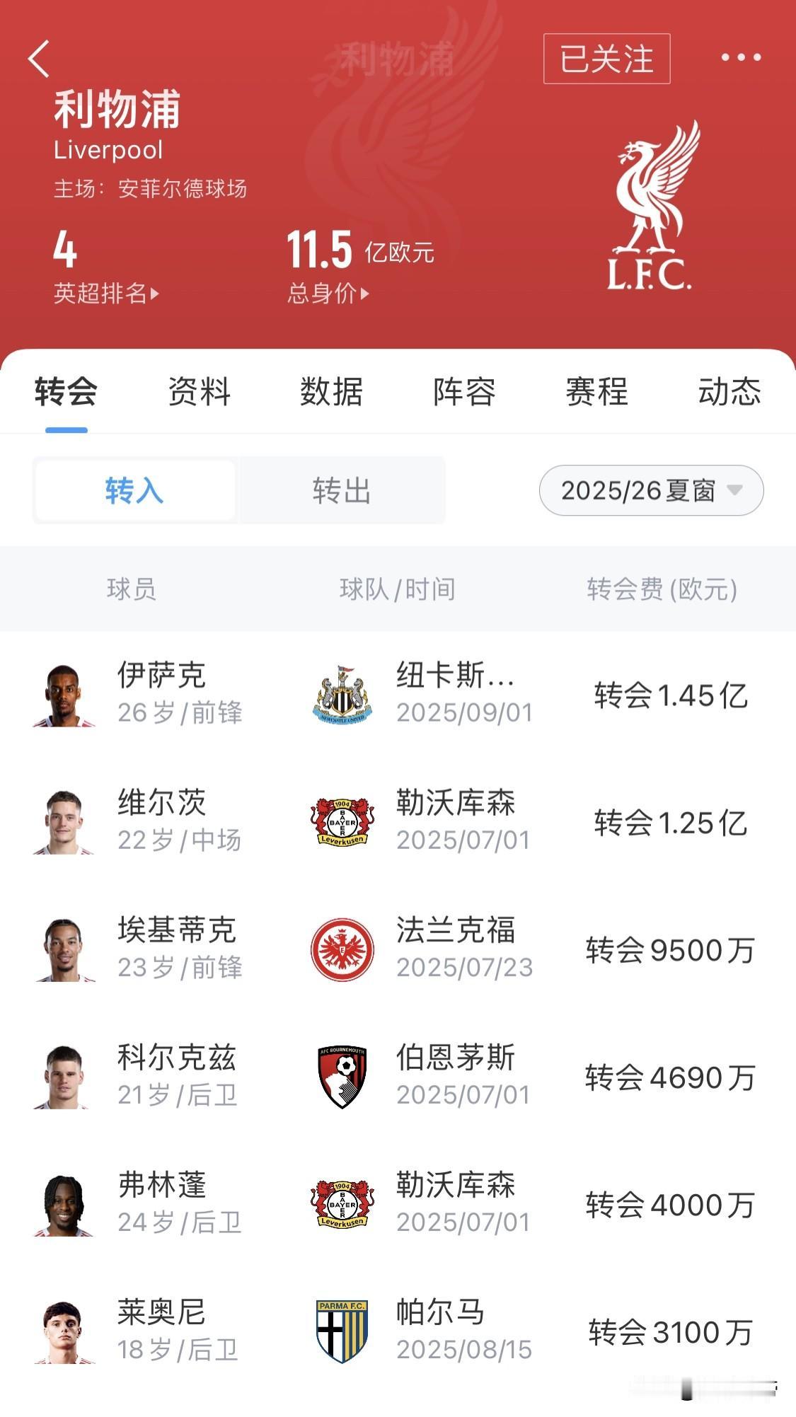 卧龙凤雏,利物浦两大标王竟然全是“水货”! 利物浦球迷已经失去了耐心了,维尔茨已经出战了11场比赛,伊萨克也已经出战了7场比赛了,但是依然没有打破进球荒,利物浦球迷等来等去却等到个四连败。 今年夏天利物浦在夏窗一口气花了4.83亿欧元,引进了伊萨克、维尔茨、埃基蒂克、科尔克兹、弗林蓬等球员进行不强,球迷纷纷大喊“英超提前大结局了”,毕竟利物浦可是连续打破英超两次引援记录。 现在看来,维尔茨是水货,伊萨克也是水货,根本不适应利物浦的战术,当初加盟利物浦完全就是个错误,利物浦也不应该放走迪亚斯,应该多买后卫,毕竟范迪克已经不在巅峰了。 本赛季看来利物浦基本上没有夺冠希望了,联赛冠军该轮到阿森纳了,利物浦还是先完成更新换代吧。
