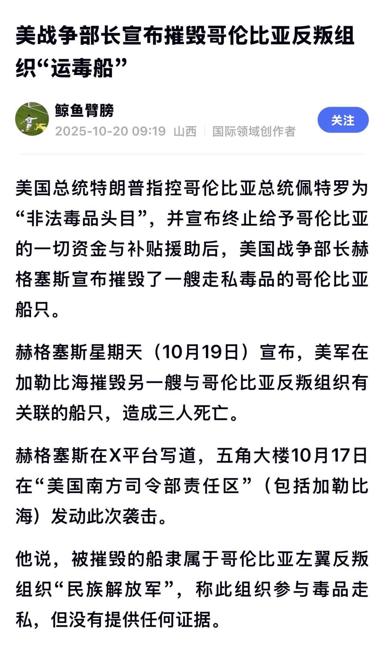 近期,哥伦比亚与美国关系紧张。直接原因是今年9月,佩特罗在纽约出席联合国大会期间,参加了支持巴勒斯坦的集会,并公开呼吁美军士兵拒绝服从特朗普的命令。此举导致美国撤销了佩特罗的入境签证。