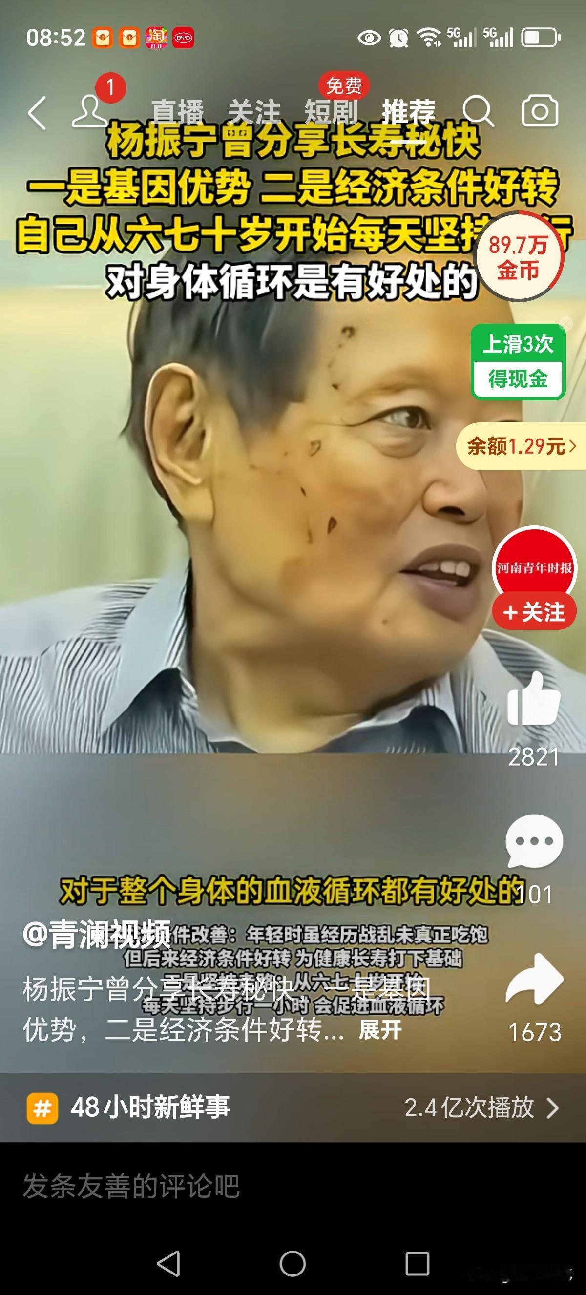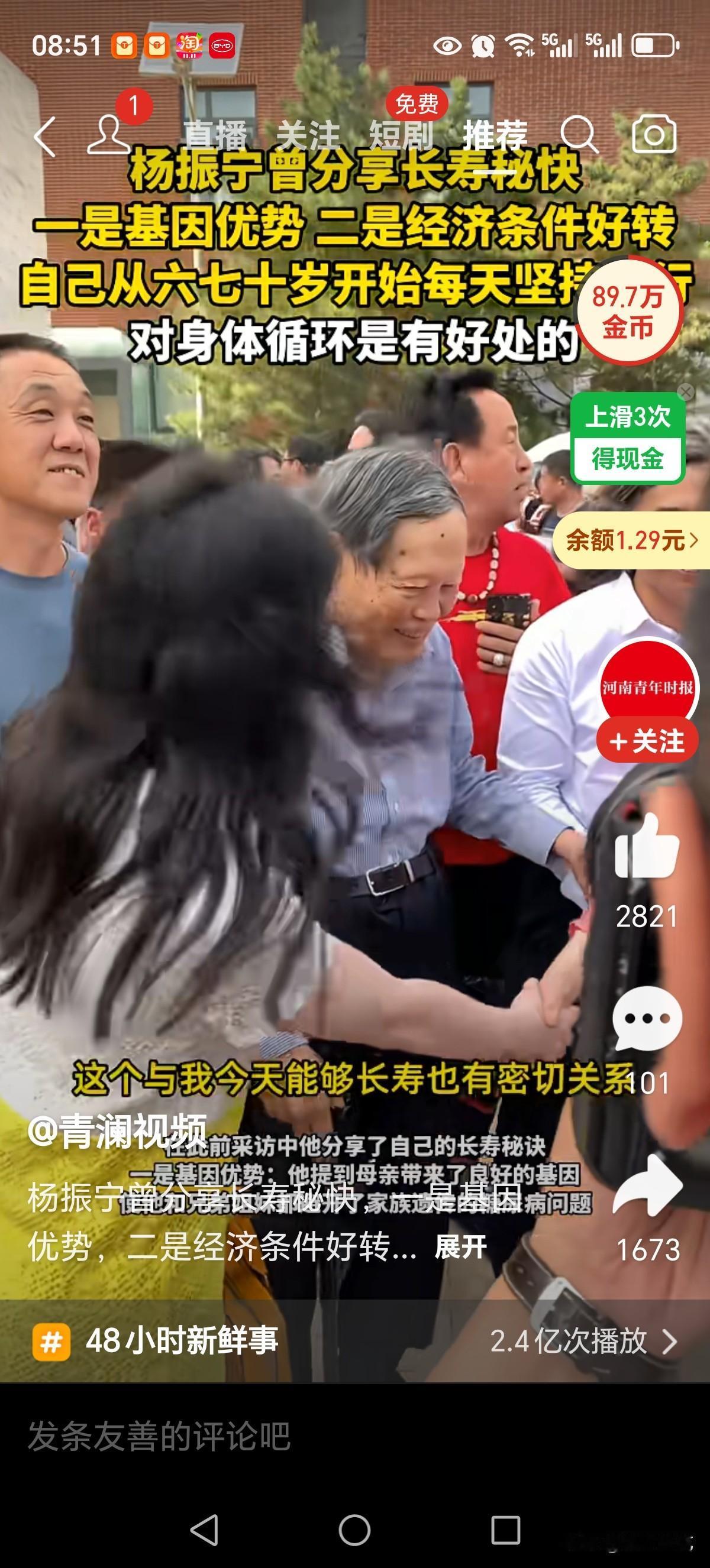 抖音上,网络上,到处各大平台都在传播杨振宁逝世的消息,杨振宁老先生享年103岁,