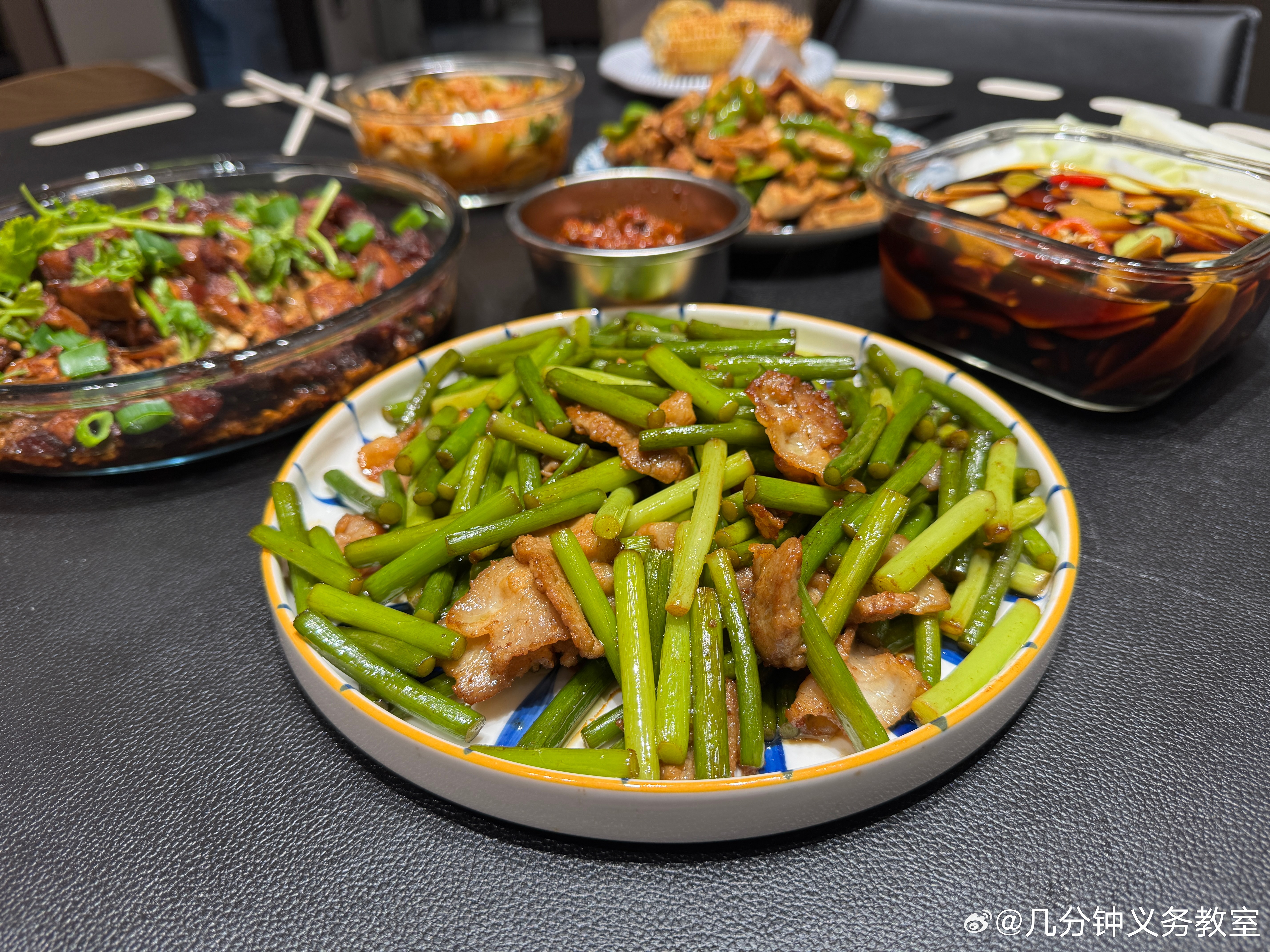 顶级美食之一:蒜苔炒肉里的五花肉。同意的抠1