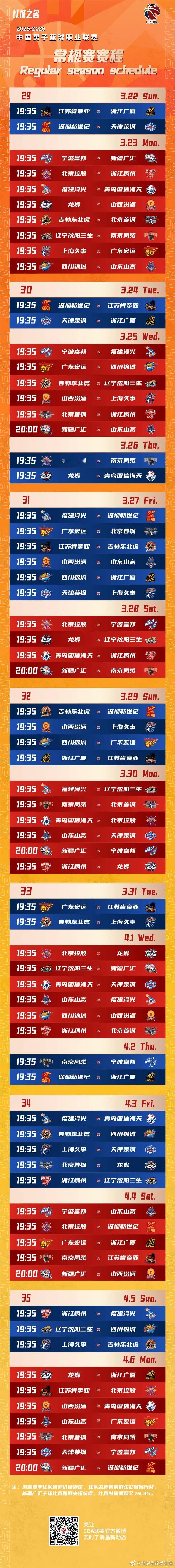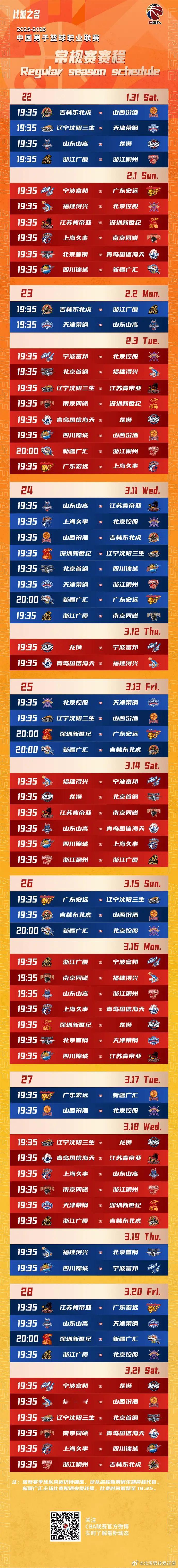 2025-2026赛季CBA联赛常规赛将于12月12日开赛,次年4月24日收官。