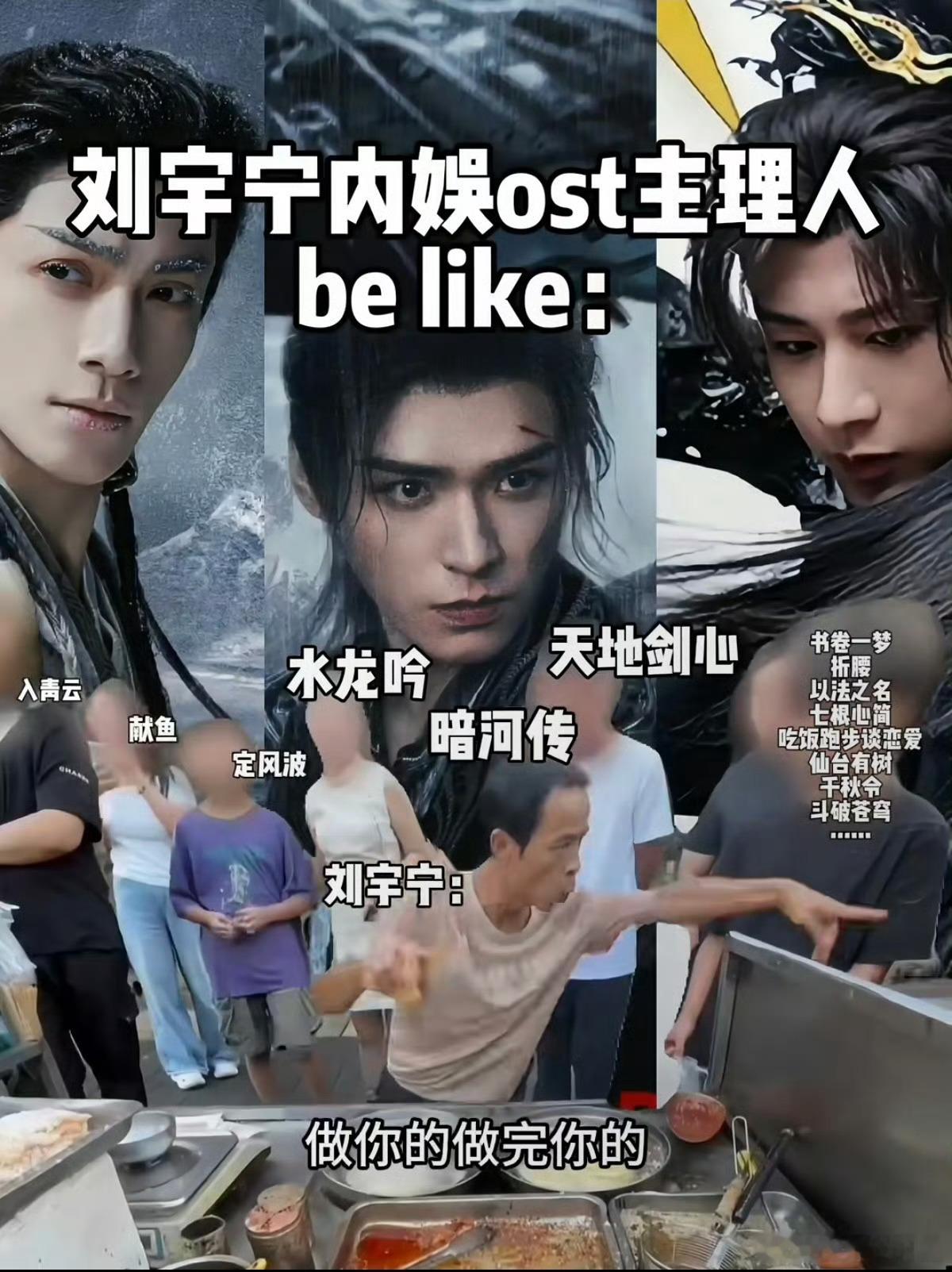 即将上映的三部剧,《暗河传》《水龙吟》《天地剑心》的OST都是刘宇宁[泪奔],三折叠款爱情保安刘宇宁,三个剧都是他的歌,哈哈哈哈哈