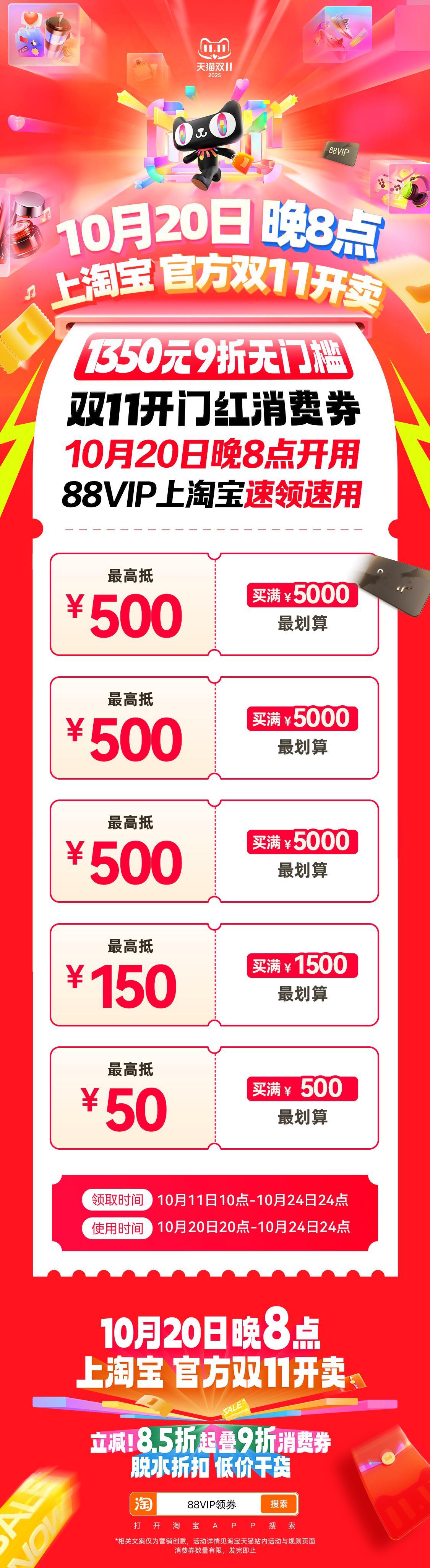 一张图教你用天猫万元大券包 别再看那些烧脑的规则了!今年天猫双11主打一个简单粗暴:官方立减85折起+人人可领9折消费券,再叠官方补贴、店铺券和直播红包,到手折上折不是梦!10月20日晚8点现货开卖,这份万元大券包攻略收好,效率薅羊毛!
