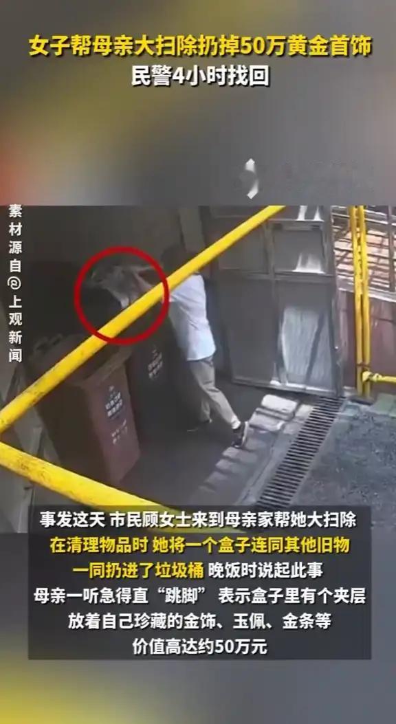 上海的顾女士为母亲做大扫除,险些酿成大祸。她把一个旧盒子跟其他杂物一并扔掉,直到晚上才知道盒子夹层里放着价值50万的黄金首饰、玉佩和金条。母亲急得像热锅上的蚂蚁,顾女士赶忙跑到垃圾房寻找,一无所获后只能报警求助。 民警相当负责,通过调取监控找到了保洁员。原来,保洁员整理垃圾时,感觉盒子很沉,便打开查看,看到里面的金饰后将其好好保管起来。报警四小时后,顾女士就拿回了失物,还送了锦旗向民警致谢。此事真是虚惊一场,也给大家提了个醒,大扫除“断舍离”时,一定要仔细检查旧物。 全屋大扫除 女人大扫除 全屋清理