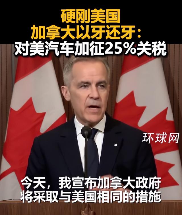 像加拿大的总理卡尼也是以牙还牙,决定与美国硬碰硬,宣布对美国汽车加征25%的关税。