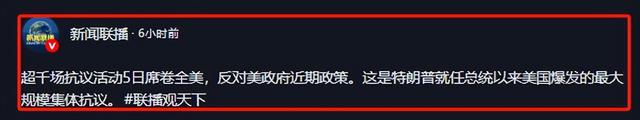 【1】2025年4月7日发布 官方媒体 新闻联播《超千场抗议活动5日席卷全美,反对美政府近期政策。这是特朗普就任总统以来美国爆发的最大规模集体抗议。#联播观天下》